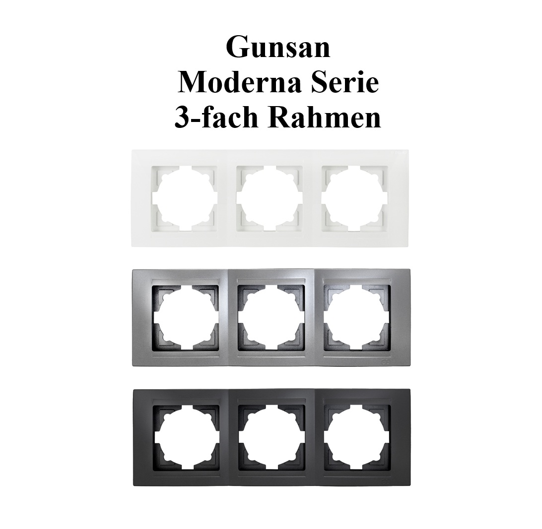 Dieser praktische 3-fach Rahmen Moderna Senkrecht 01291100000144 von Gunsan in strahlendem Weiss ist die perfekte Abdeckung für drei Schalter, Dimmer und Steckdosen.