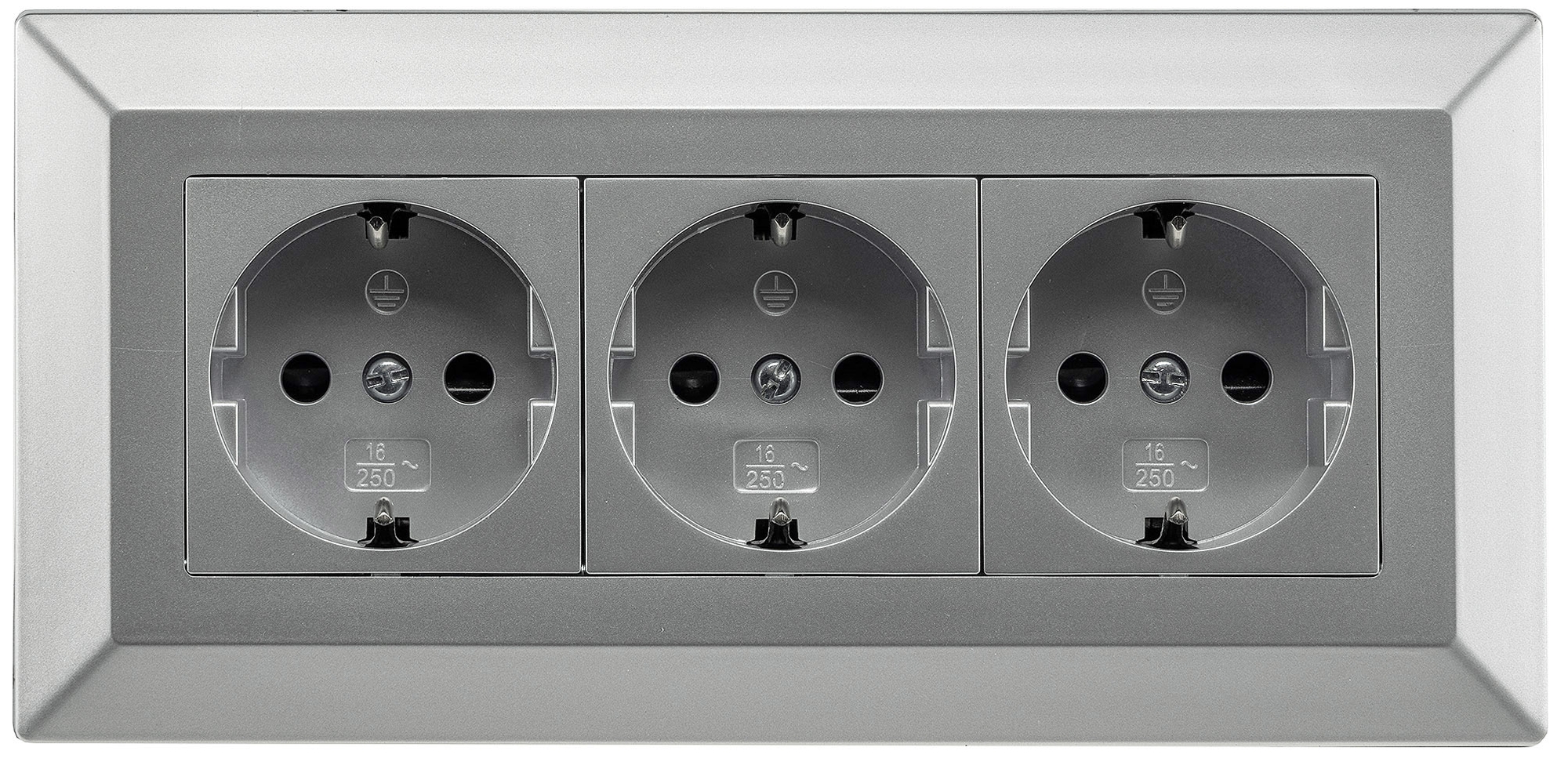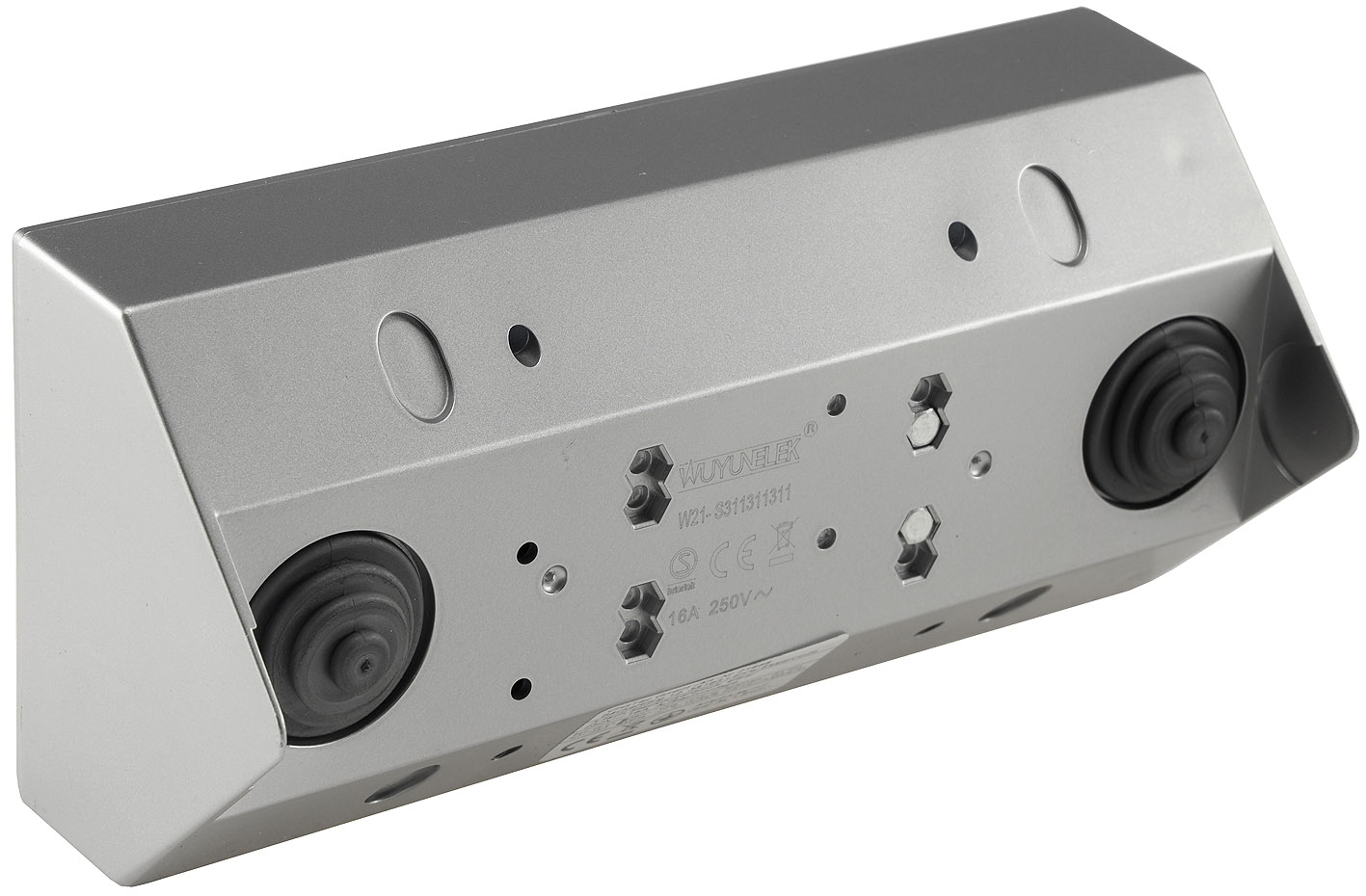 Gehäuse mit 45° Anwinkelung - ChiliTec 3-fach Steckdosenblock 23630 in Farbe Weiss, 250V~/ 16A, Aufbau-Steckdosen mit Schutzkontakt für Aufbaumontage.