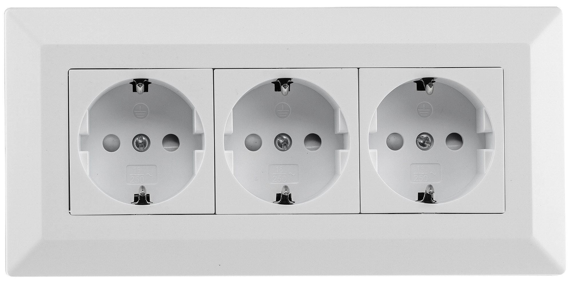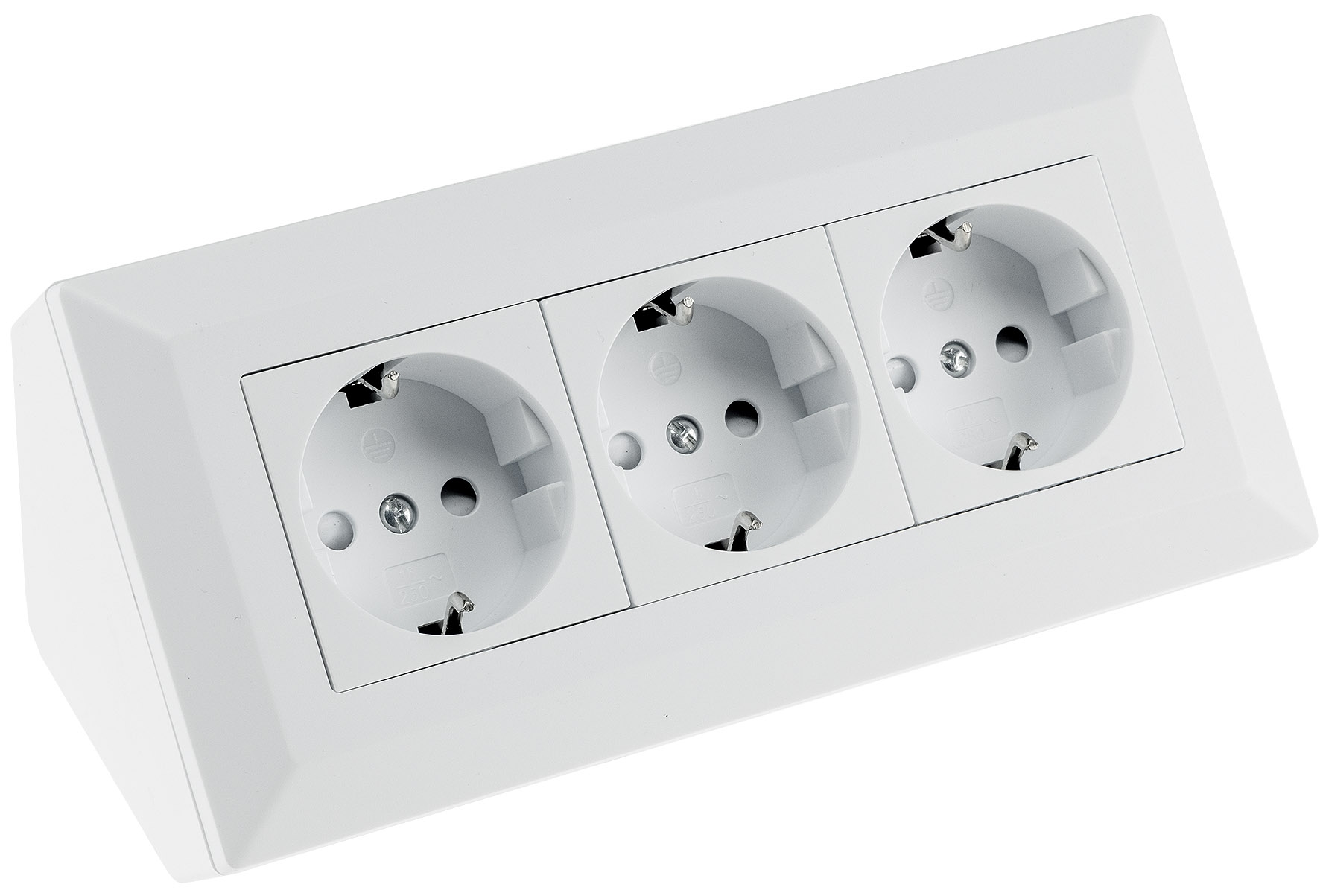 ChiliTec 3-fach Steckdosenblock 23631 in Farbe Weiss Matt mit Gehäuse mit 45° Anwinkelung, 250V~/ 16A, Aufbau-Steckdosen mit Schutzkontakt für Aufbaumontage.