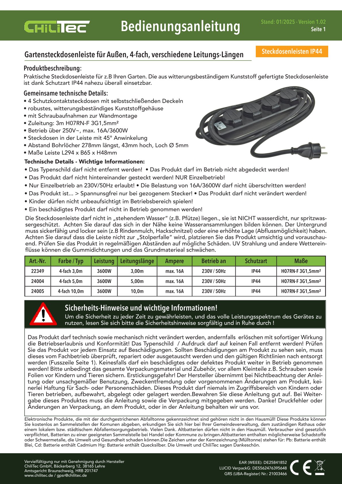 Angaben gem. Hersteller EU-Produktsicherheitsrichtlinie: Chilitec GmbH Bäckerberg 12 38165 Lehre-Essenrode, gpsr@chilitec.de