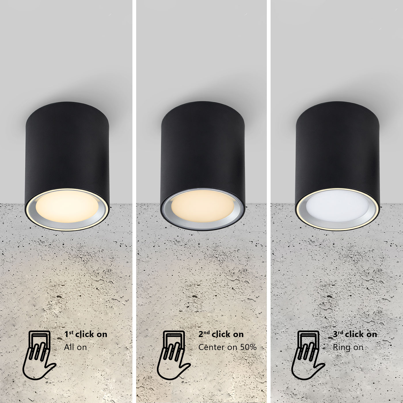 LED Deckenleuchte von Nordlux ist dimmbar (3-stufiges Moodmaker™-Dimmen über Ihren normalen Wandschalter) - Zylinderleuchte FALLON 47550132 Anbau Aufbauleuchte, Farbe geb. stahl, Leistung 8,5W 500Lm, Lichtfarbe warmweiß