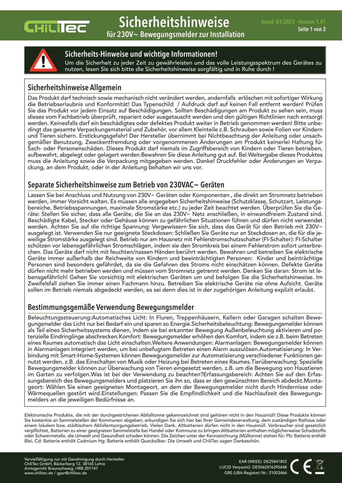 Lieferumfang : 1x Bewegungsmelder inklusive Rahmen