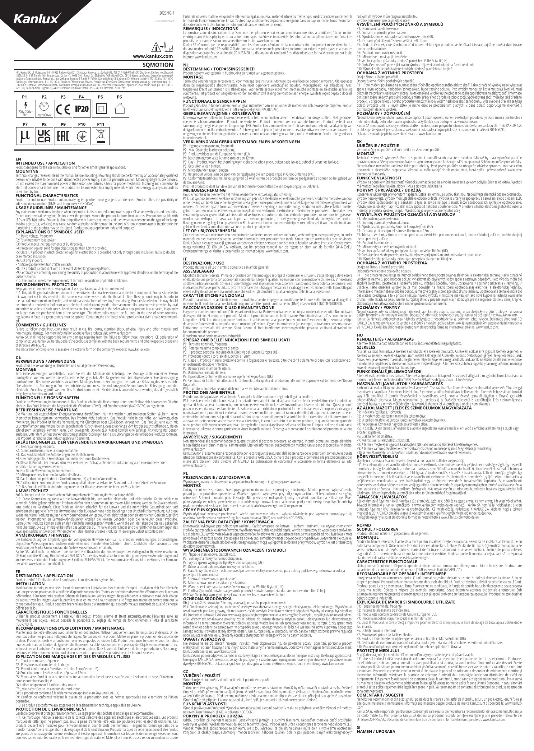 Angaben gem. Hersteller EU-Produktsicherheitsrichtlinie: Kanlux GmbH / IDEAL, Flugplatz 21, 44319 Dortmund, kanlux@kanlux.com