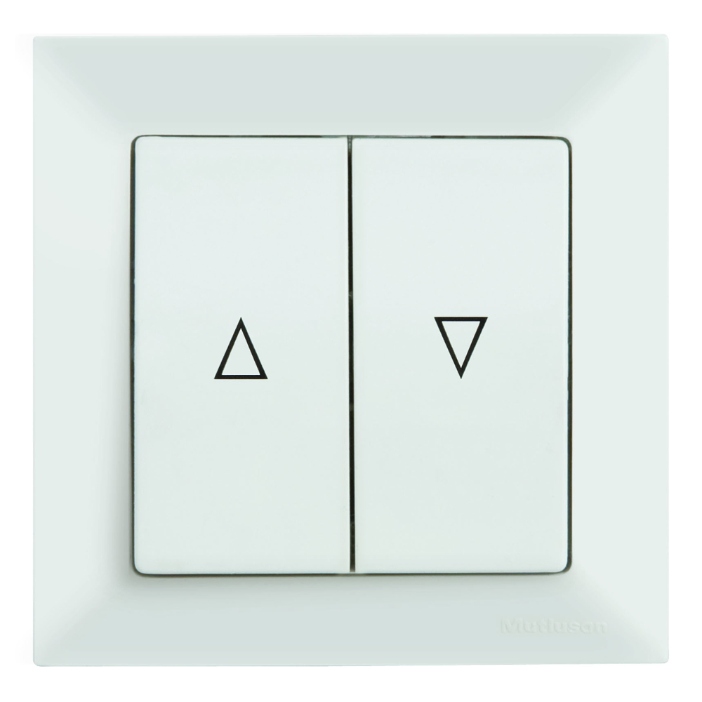 Taster mit 2 Wippen aus Candela Serie - Jalousietaster von Mutlusan, Taster Rolladentaster in Farbe weiss für Unterpurz Elektromontage.