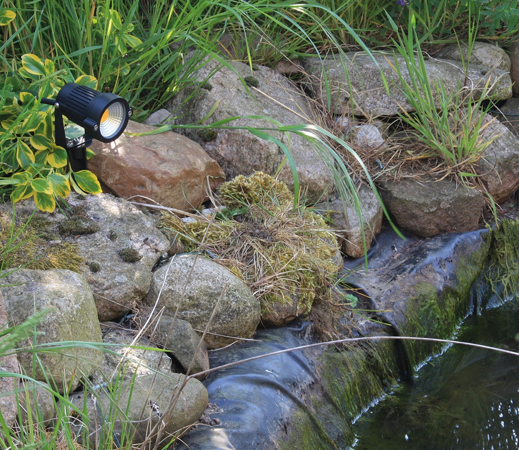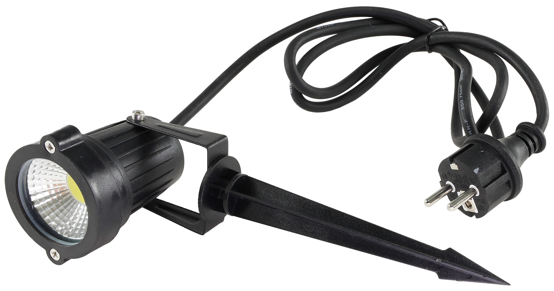 ChiliTec 5W LED COB Gartenleuchte "CT-GS5" mit Art.-Nr. 21751 in Schwarz besitzt eine IP65/44 Schutzart sowie Bügel + Erdspieß und 1,5m Kabel und leuchtet in warmweiss mit 410Lm.