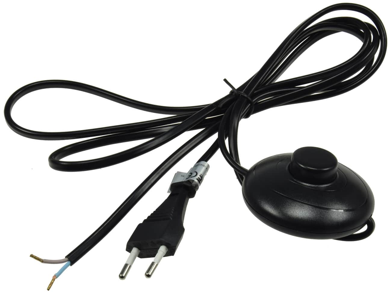 ChiliTec Netzkabel 22520 2m lang in Farbe Schwarz ist mit Fußschalter sowie blanke Enden.