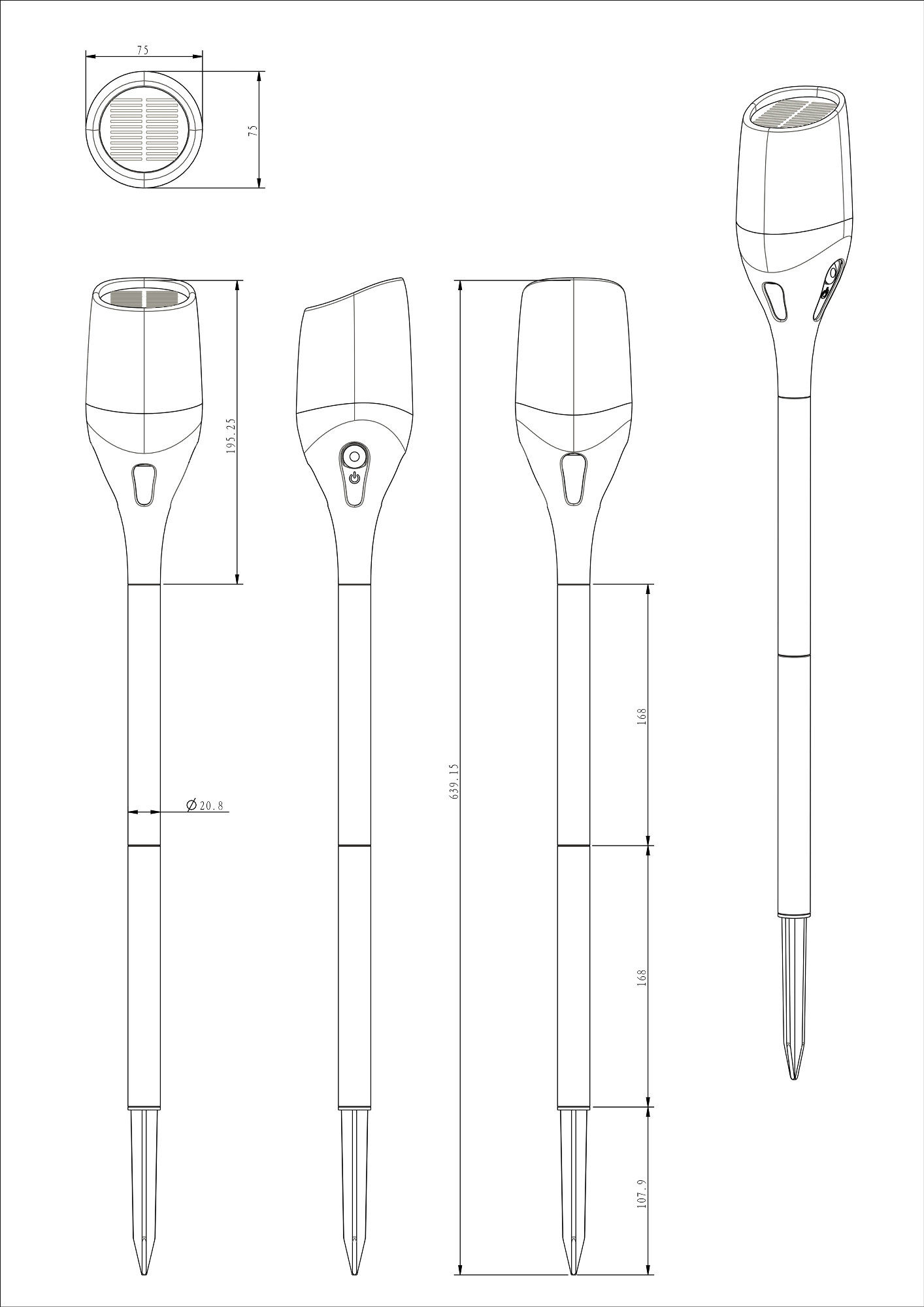 Abmessungen : Höhe max. 64,5cm x Erdspieß-Duchmesser 20mm