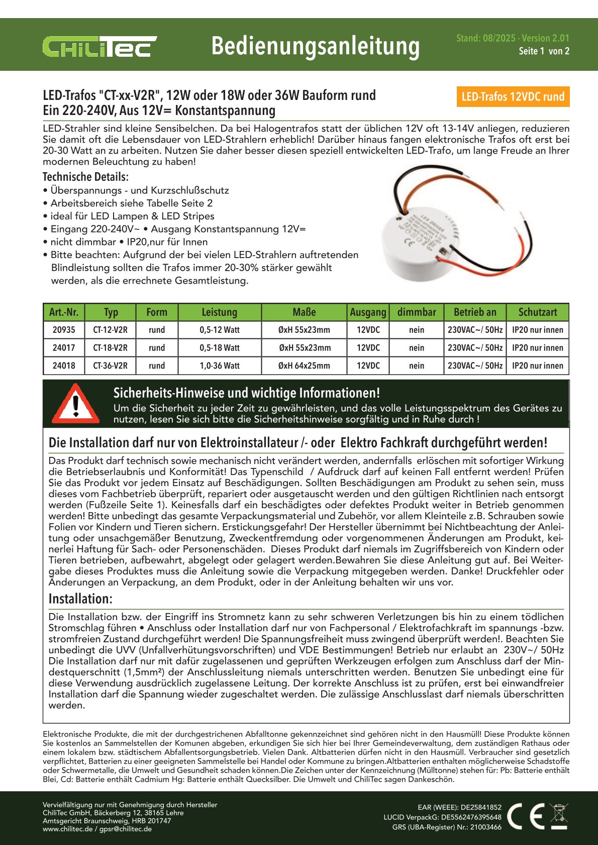 Angaben gem. Hersteller EU-Produktsicherheitsrichtlinie: Chilitec GmbH Bäckerberg 12 38165 Lehre-Essenrode, gpsr@chilitec.de