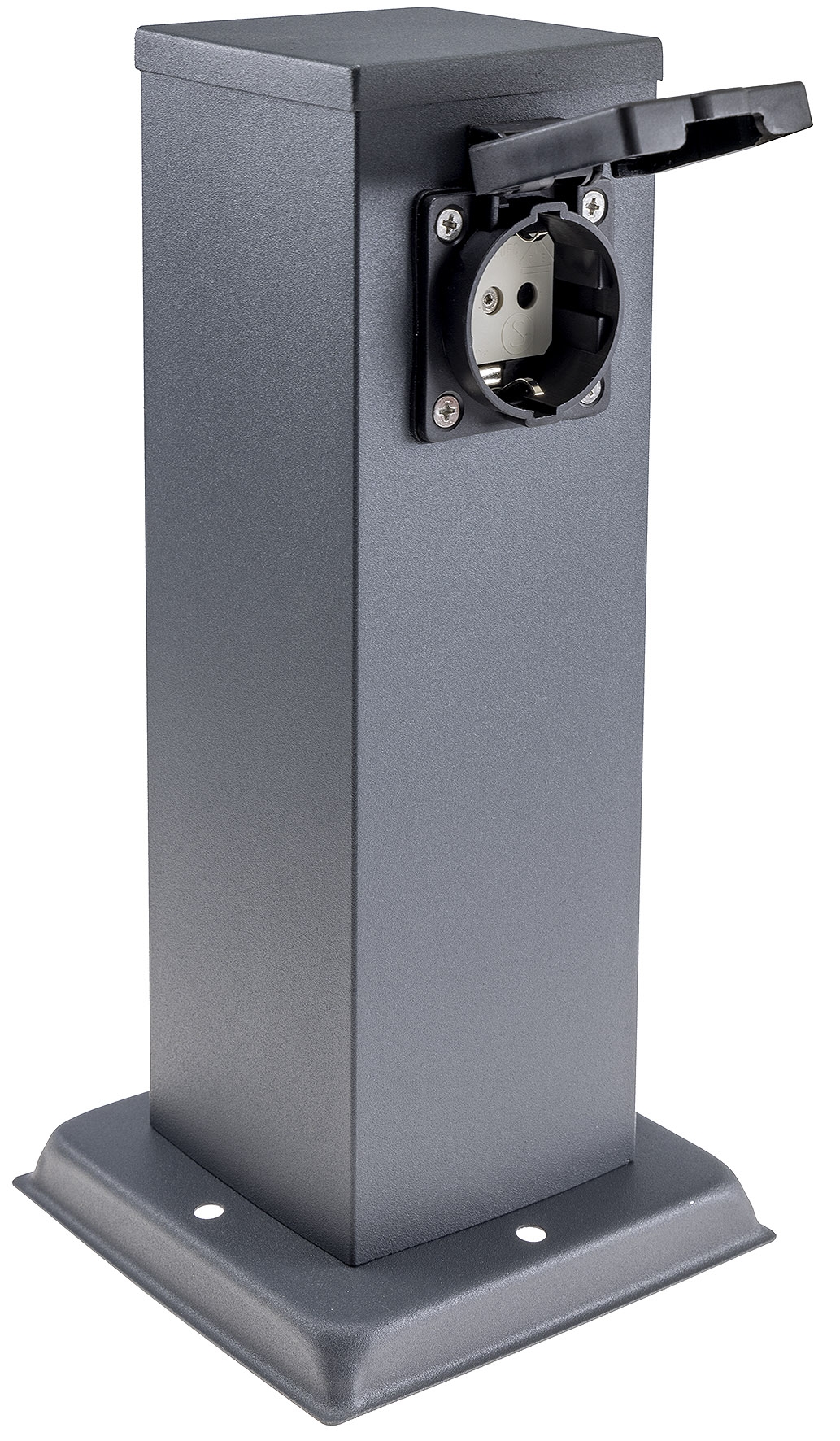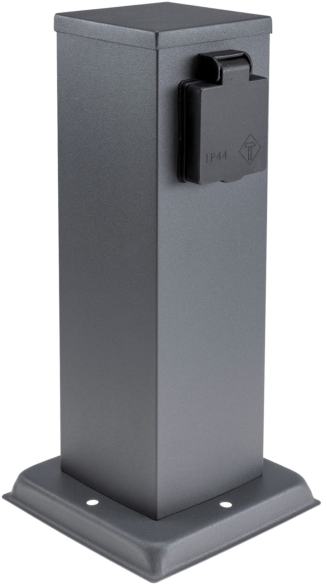 2-fach ChiliTec Steckdosensäule mit 2 Steckdosen mit Deckel und erhöhtem Berührungsschutz in Farbe Anthrazit. Gartensteckdosen / Steckdosensäule besitzt IP44 Schutzart und als Energiesäule für Garten ideal geeignet. Ein Passender Bodenanker / Erdspieß mit Art.-Nr. 23447 ist separat bestellbar.