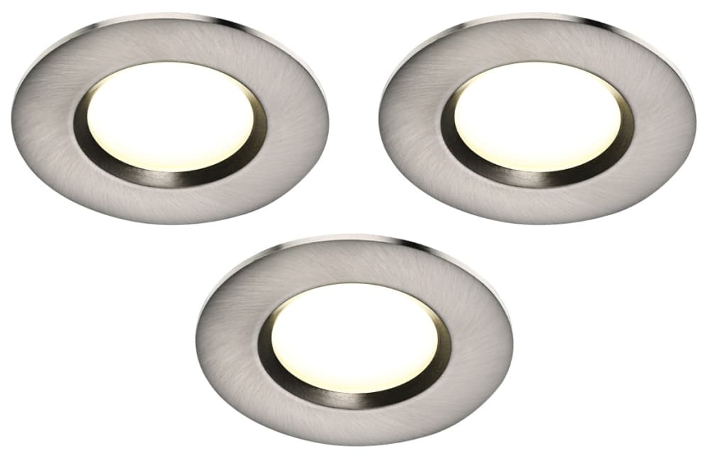 Clarkson 3-Kit / 3er Set Round LED Einbaustrahler Nordlux 47590132 in Gebürsteter Stahl. 3x4,8W Einbauleuchte mit 2700K Lichtfarbe warmweiss.