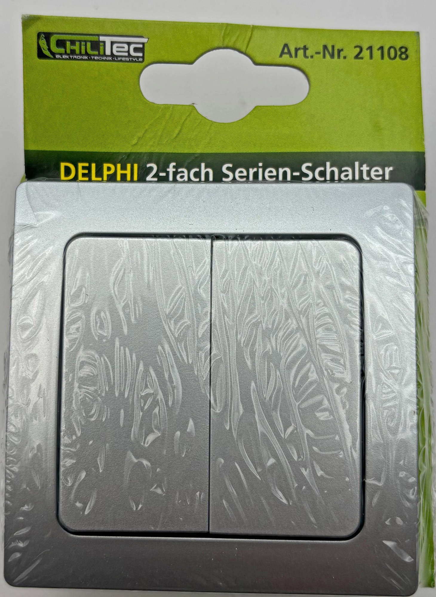 Lieferumfang : 1x 2-fach Schalter DELPHI, silber