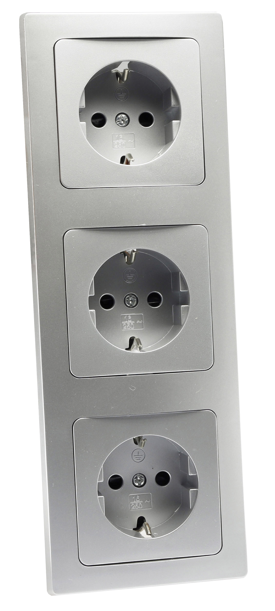 Preview: DELPHI Set 3 Steckdosen + 3-fach Rahmen 250V/16A, Steckanschluss 23064