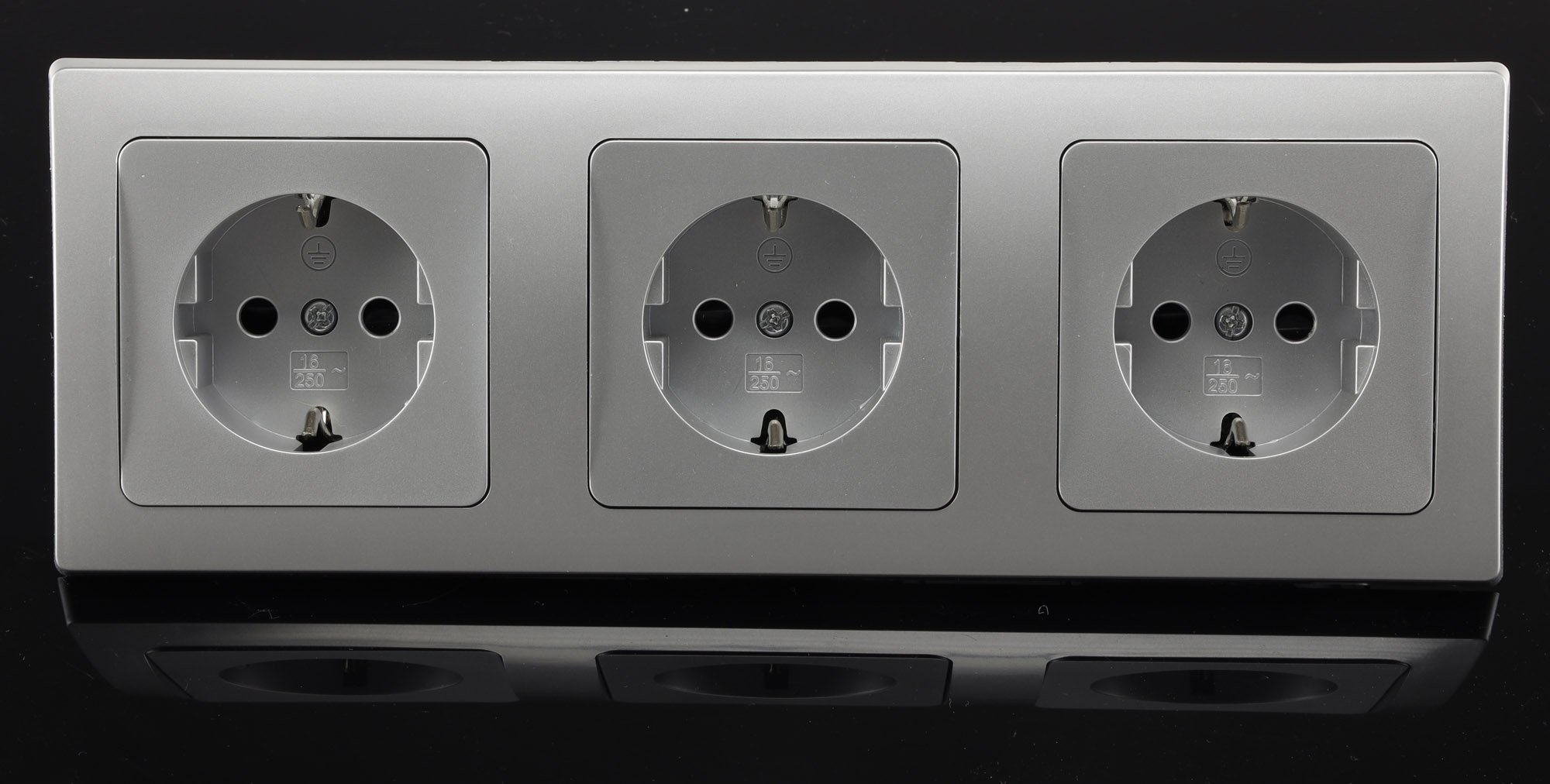 DELPHI Set 3 Steckdosen + 3-fach Rahmen 250V/16A, Steckanschluss 23064