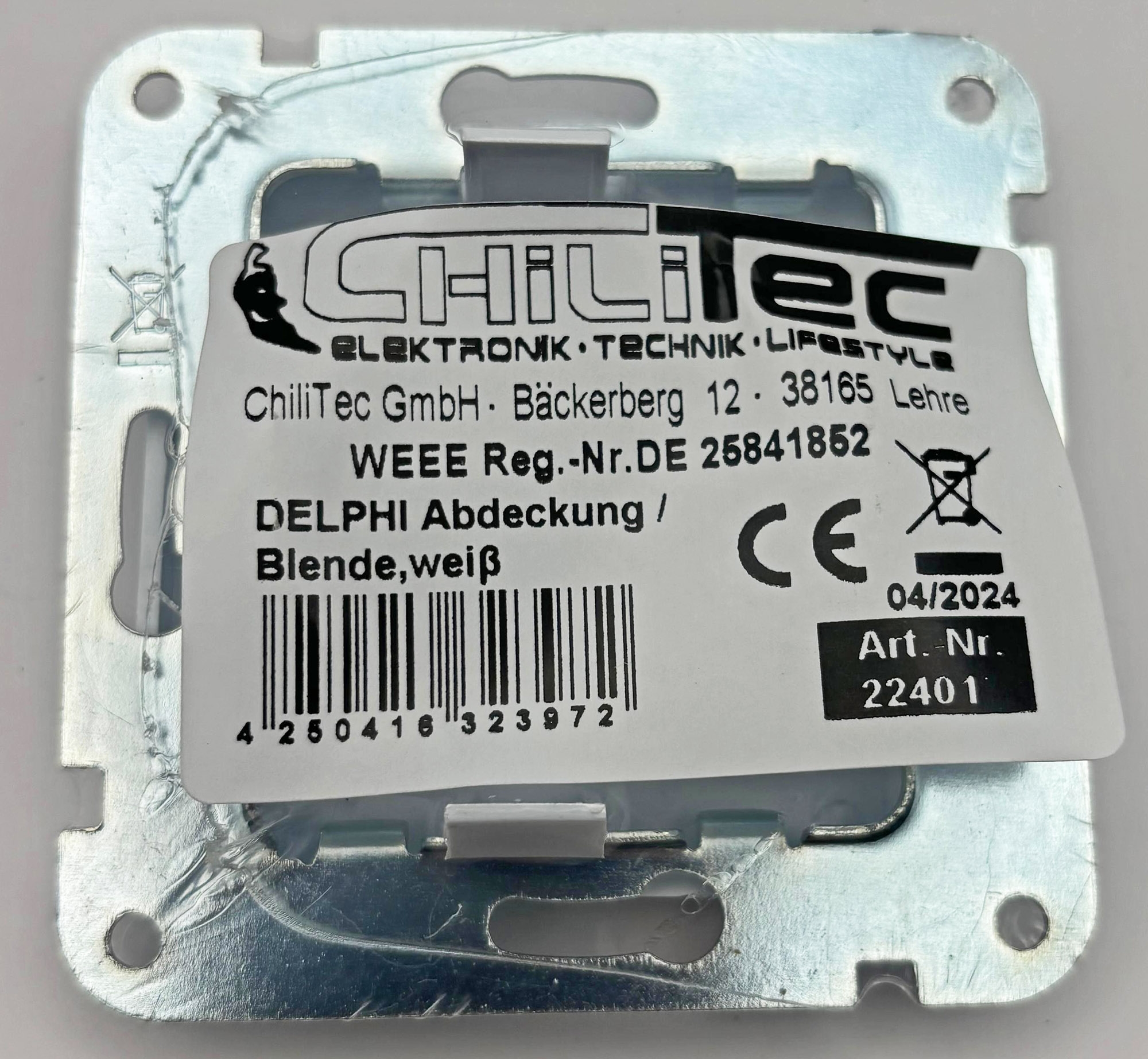 Blind-Abdeckung / Blende in Frabe weiß aus DELPHI Serie, ohne Rahmen, Art. 22401 von ChiliTec.