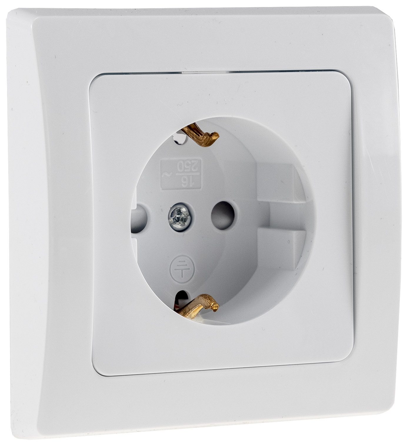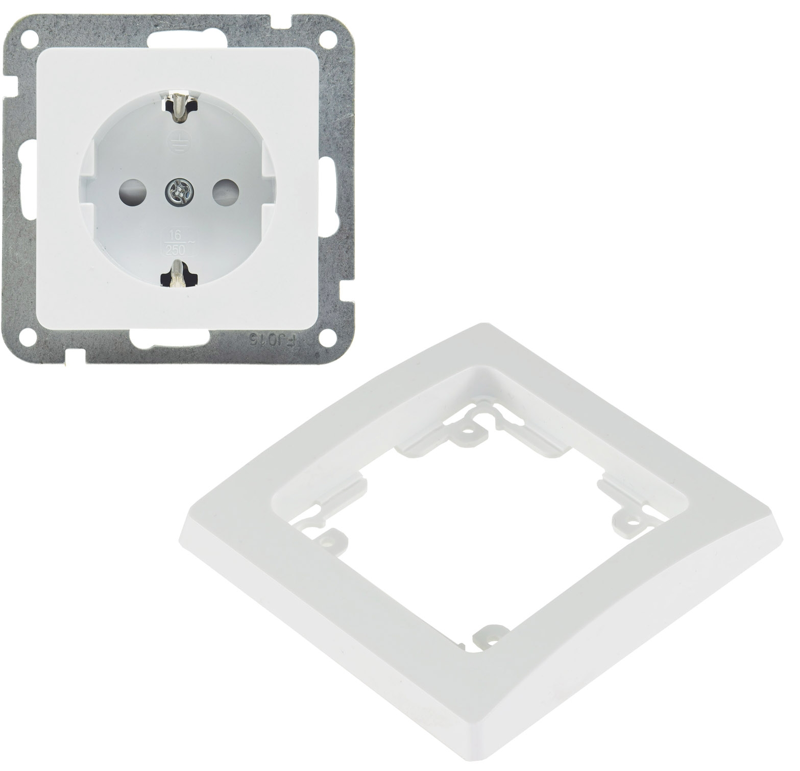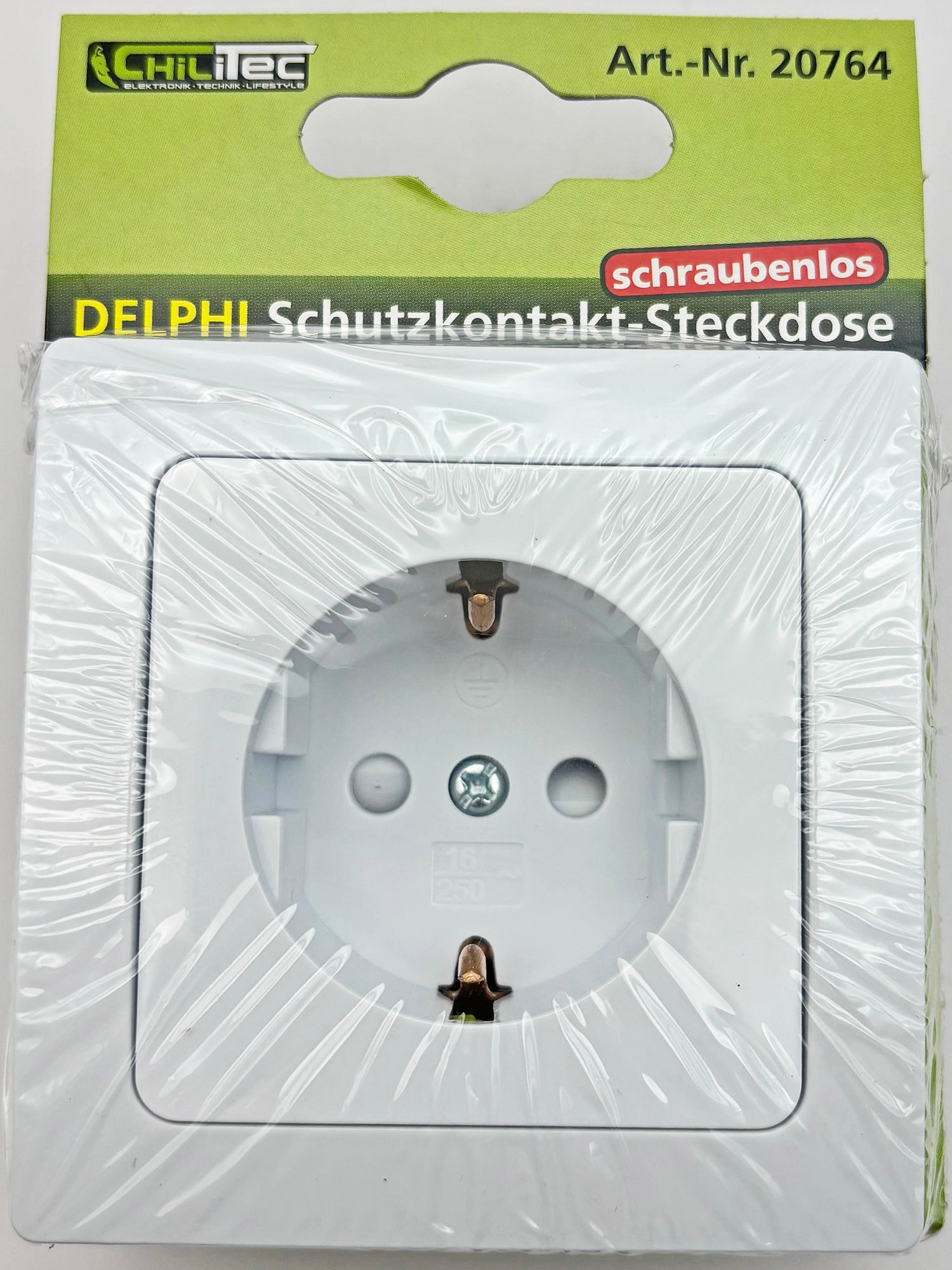 Lieferumfang : 1x 1-fach Steckdose DELPHI mit erhöhtem Berührungsschutz, weiß, mit Rahmen, Art. 20764