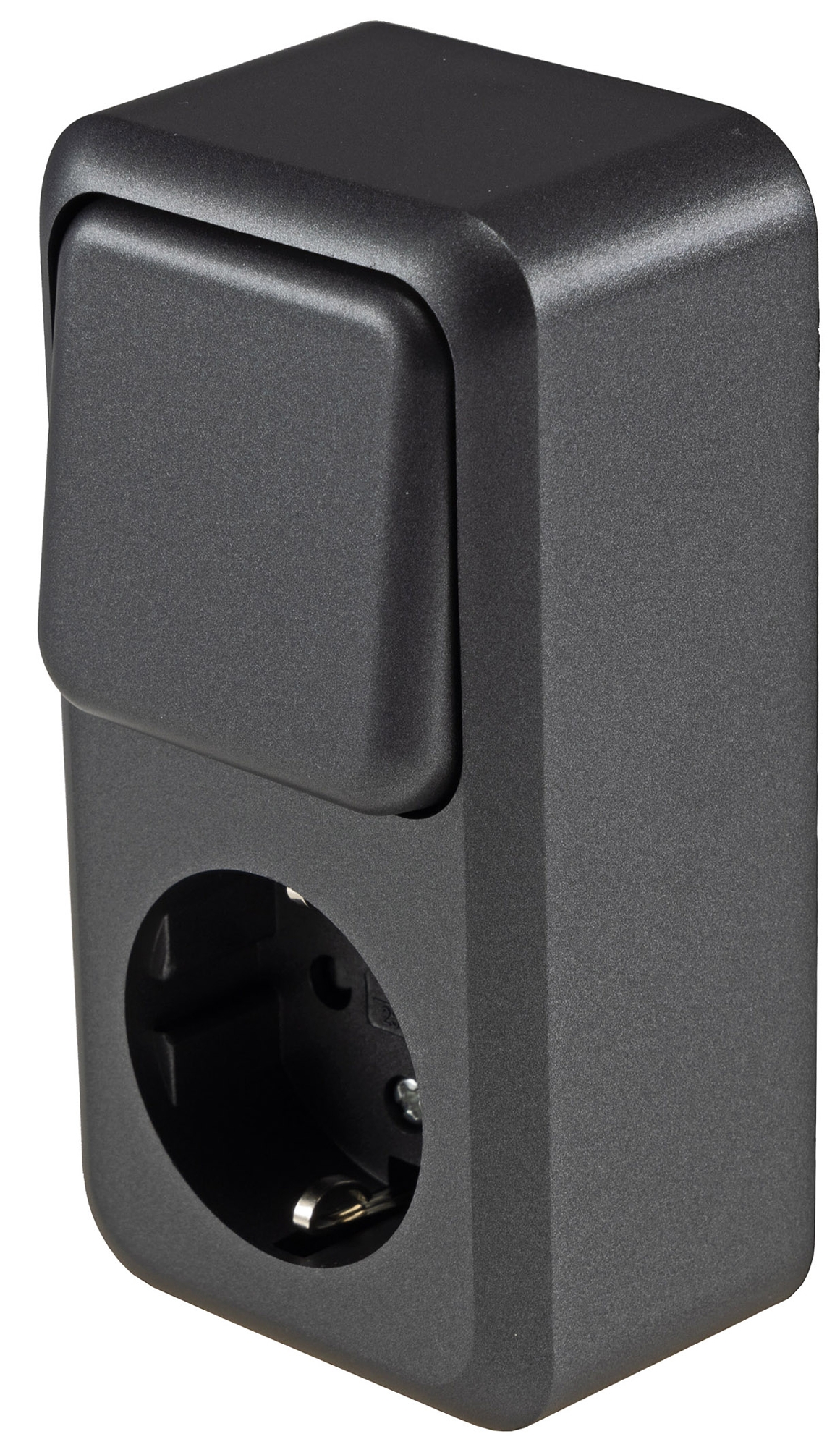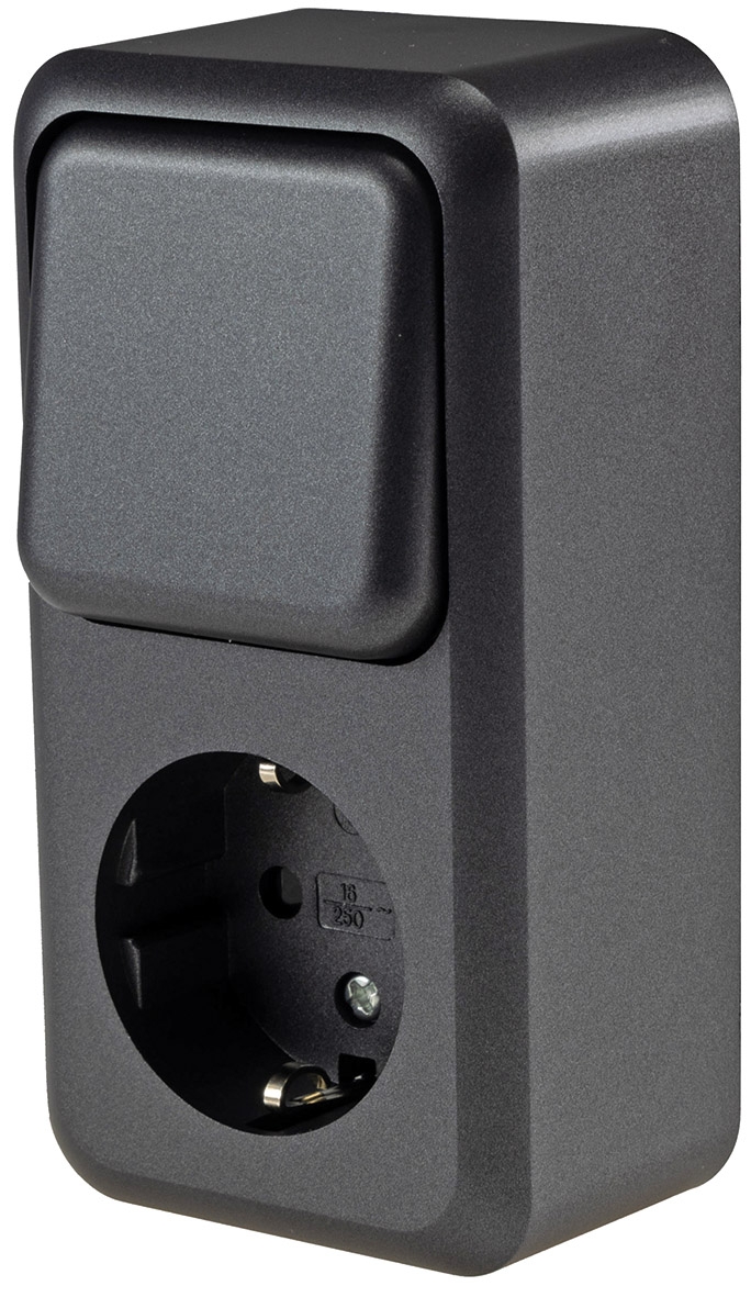 ChiliTec Kombi FASKO Steckdose mit Wechselschalter, Art.-Nr. 23818, Schutzkontakt und Schraubanschluss in Farbe Anthrazit für die Aufputz Montage.
