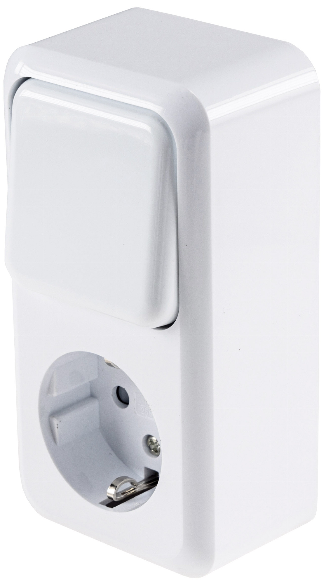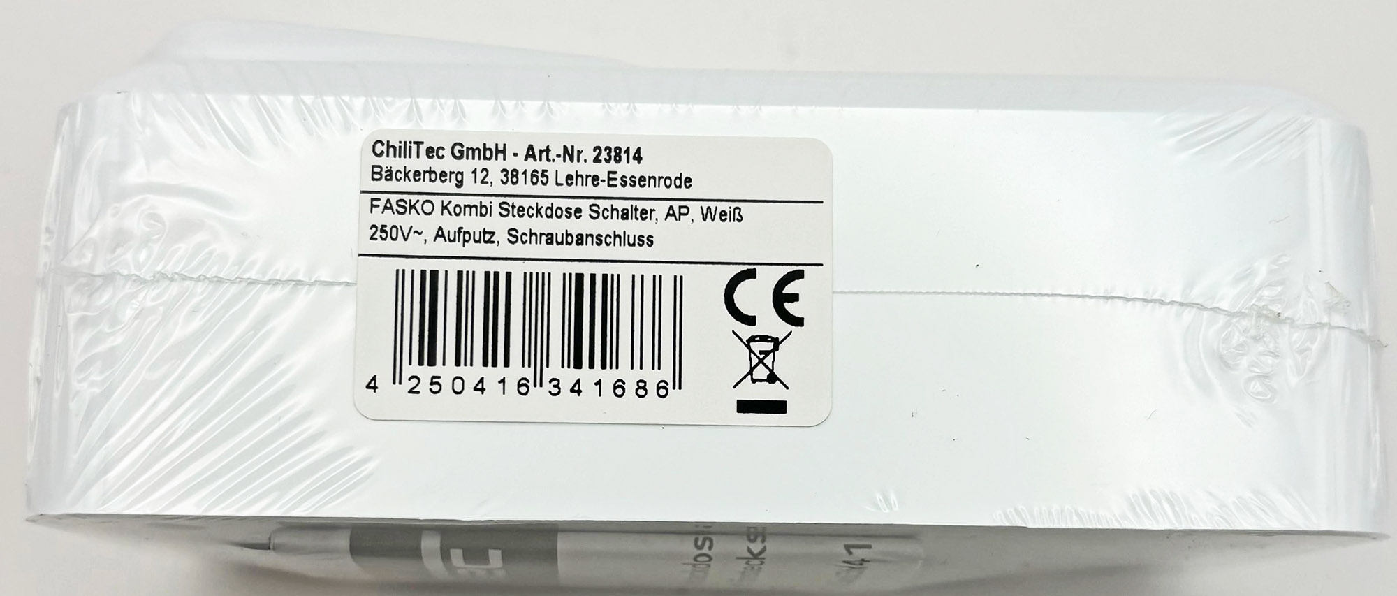 Kombi FASKO Steckdose mit Wechselschalter von ChiliTec mit Artikel-Nr. 23814, mit erhöhtem Berührungsschutz / Einsteckschutz, Schutzkontakt und Schraubanschluss in Farbe Weiß ist für die sichere Elektroinstallation (VDE Zeichen) und Aufputz Montage ideal geeignet.
