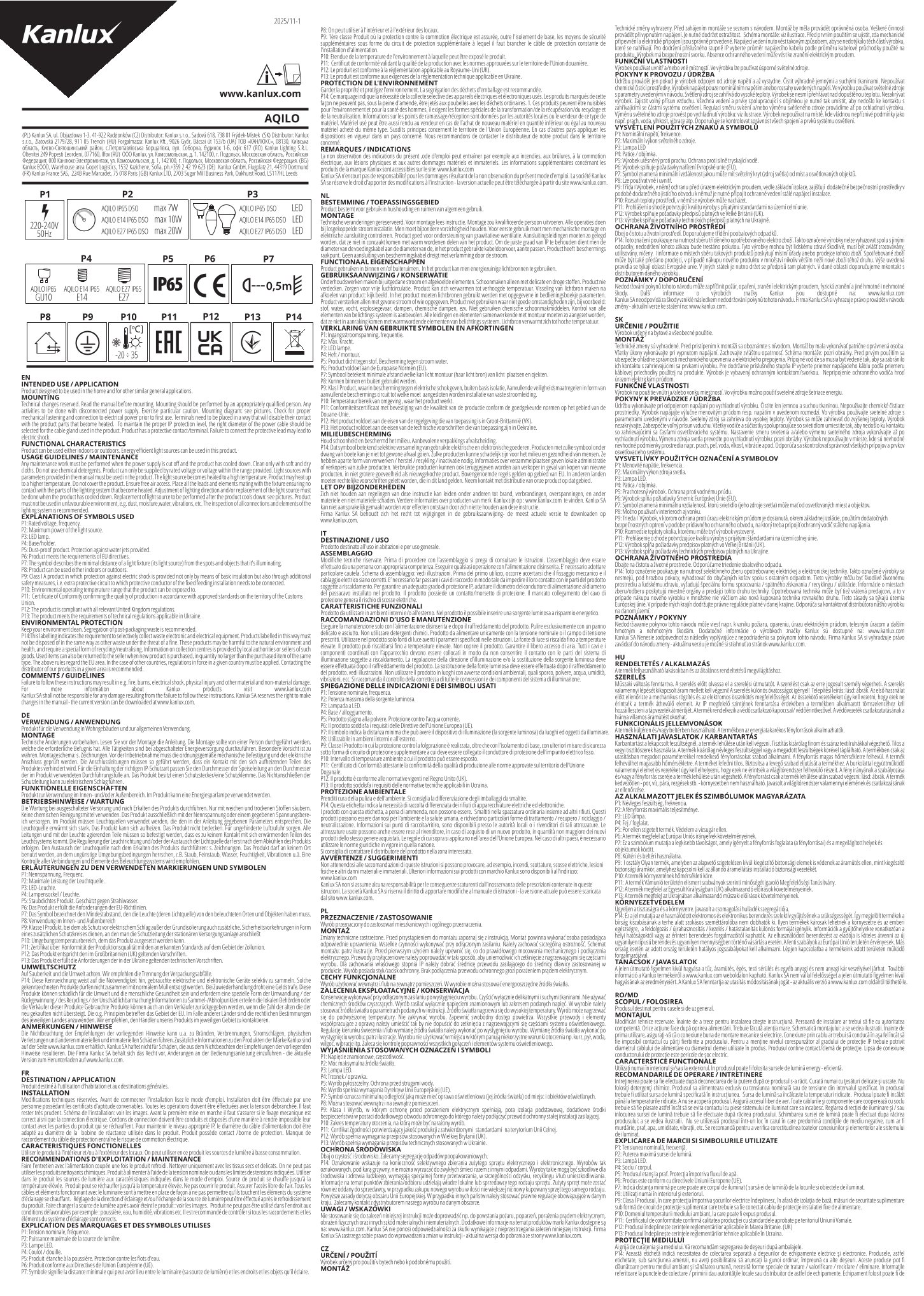 Information Produktsicherheit Angaben gem. Hersteller EU-Produktsicherheitsrichtlinie: Kanlux GmbH / IDEAL, Flugplatz 21, 44319 Dortmund, kanlux@kanlux.com