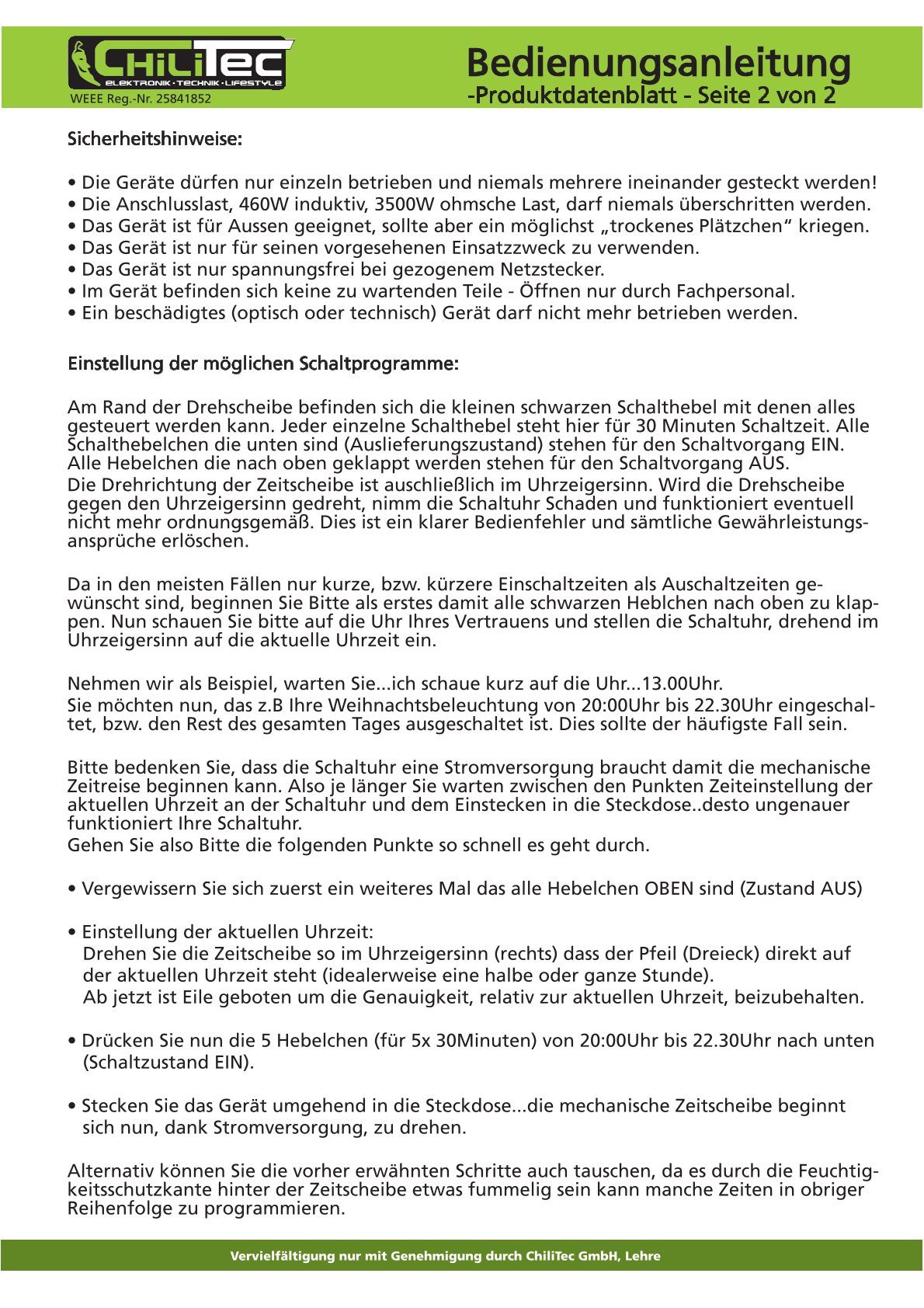 Angaben gem. Hersteller EU-Produktsicherheitsrichtlinie: Chilitec GmbH Bäckerberg 12 38165 Lehre-Essenrode, gpsr@chilitec.de