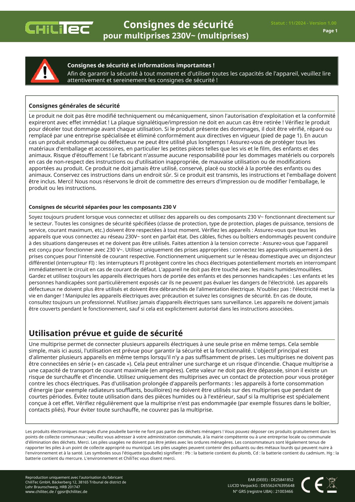 Angaben gem. Hersteller EU-Produktsicherheitsrichtlinie: Chilitec GmbH Bäckerberg 12 38165 Lehre-Essenrode, gpsr@chilitec.de