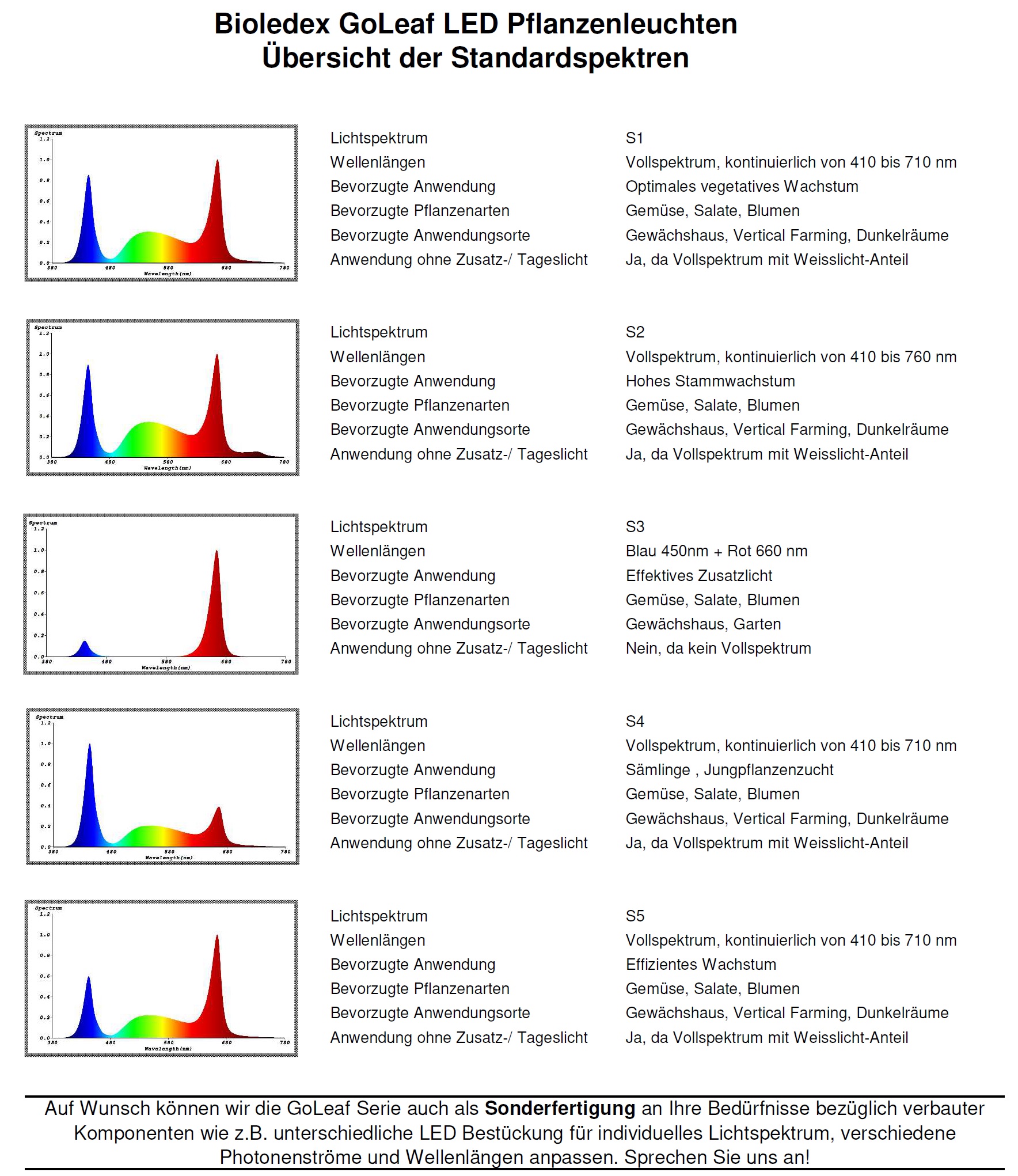 Lichtspektrum : S1 + S4, Blüte + Anzucht