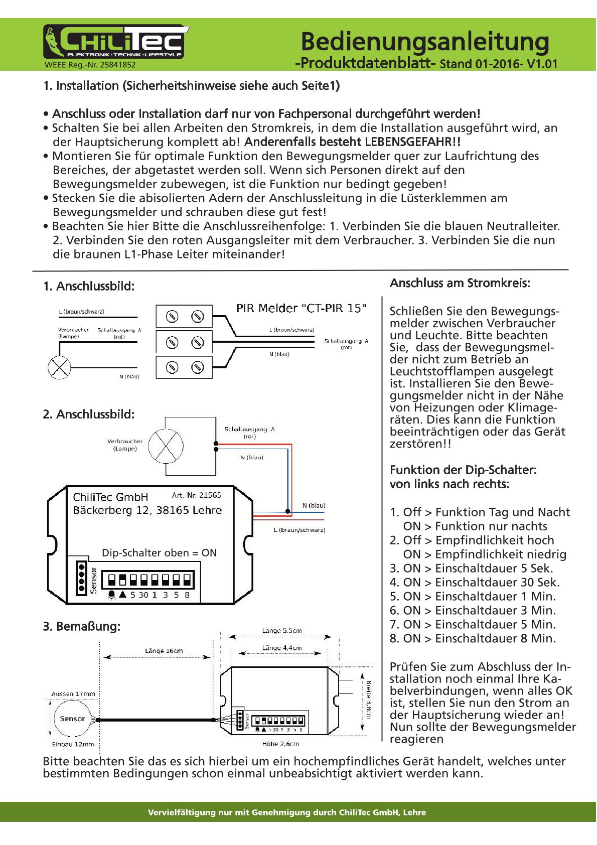 Technische Details des Bewegungsmelders: