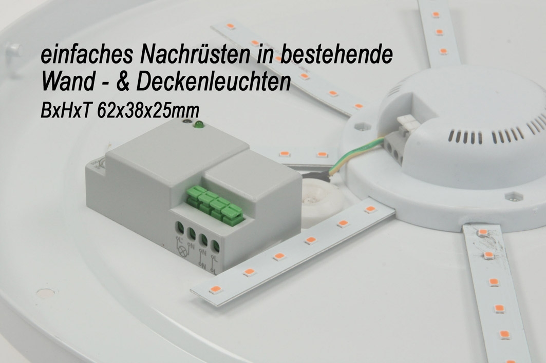 12-24V DC HF Bewegungsmelder ist ideal zur Nachrüstung in Leuchten - ChiliTec "CBM extend" mit HF-Sensor (Hochfrequenzsensor) für den Betrieb unter 12V DC oder 24V DC, Erfassungswinkel 180/360°, Art.-Nr. 23623.