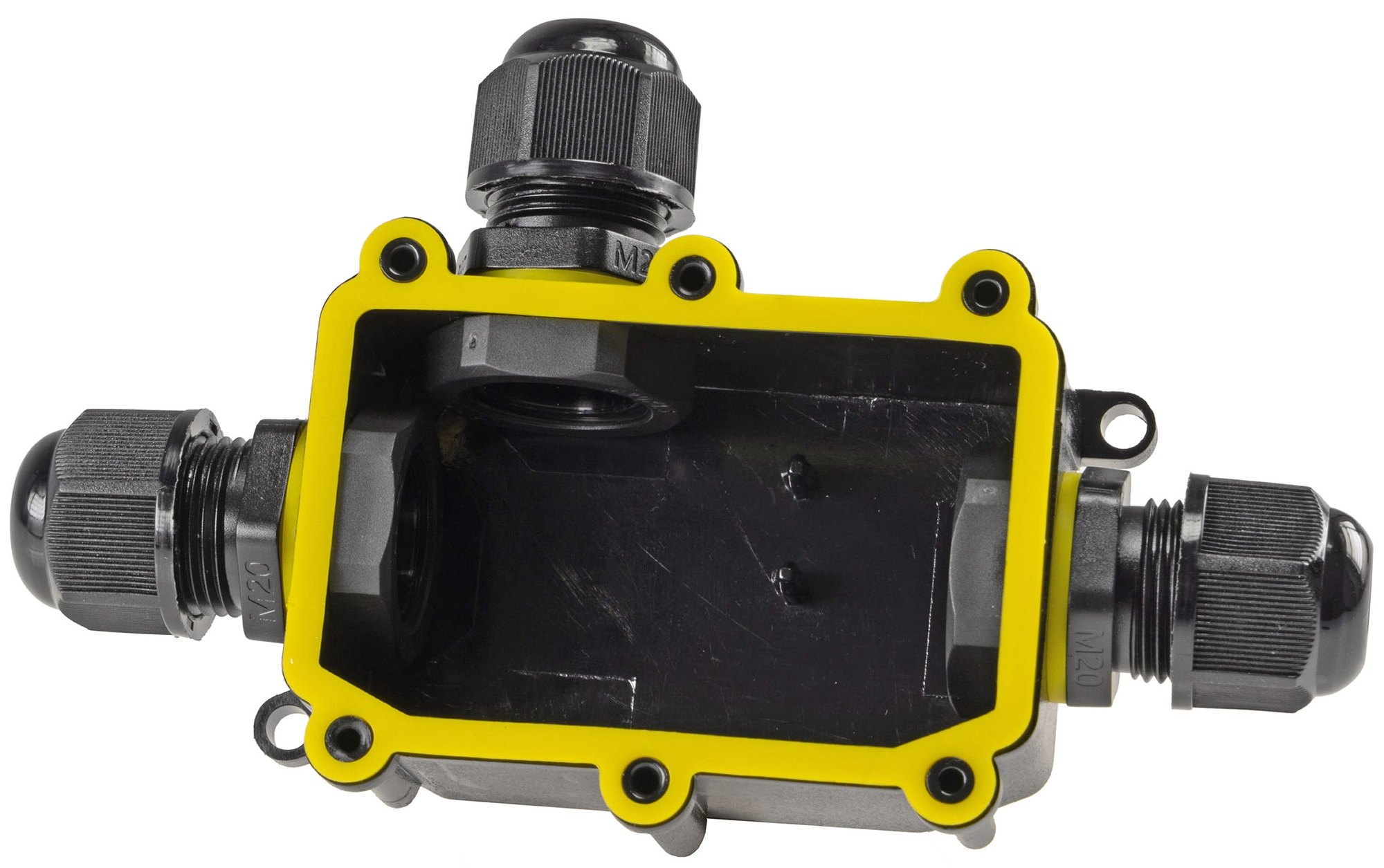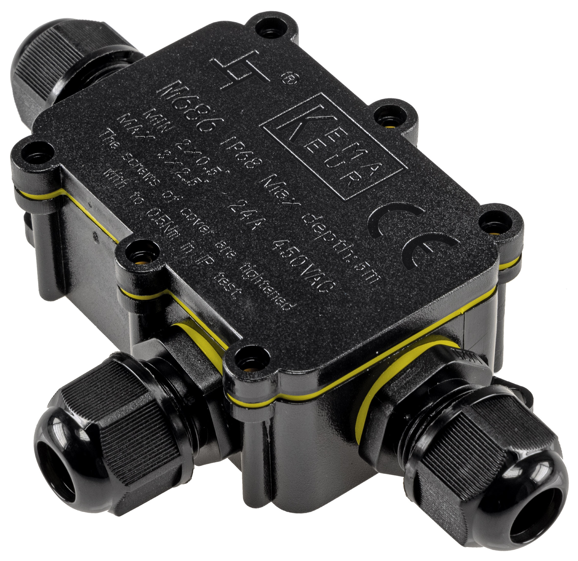 IP68 Kabelverbinderbox von ChiliTec, Art. 22030 ist für Kabel Ø6-11mm geeignet. Kabelverbinder verfügt 3 Anschlüsse: 1x Eingang sowie 2x Ausgänge.