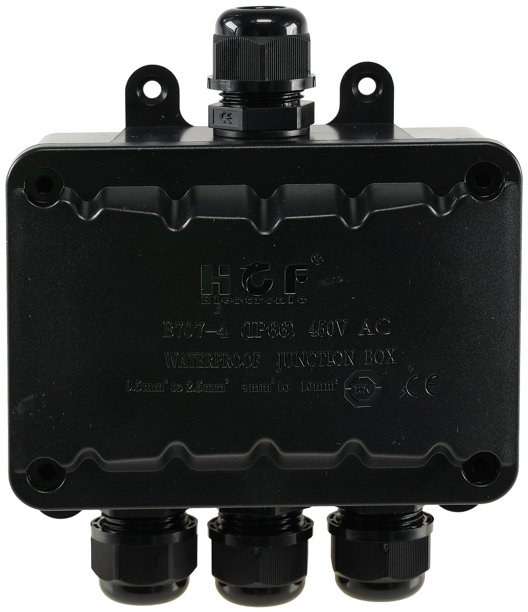 Lieferumfang : 1x ChiliTec Kabelverbinderbox für 4 Anschlüsse IP68, 1x Eingang, 3x Ausgang, 22814