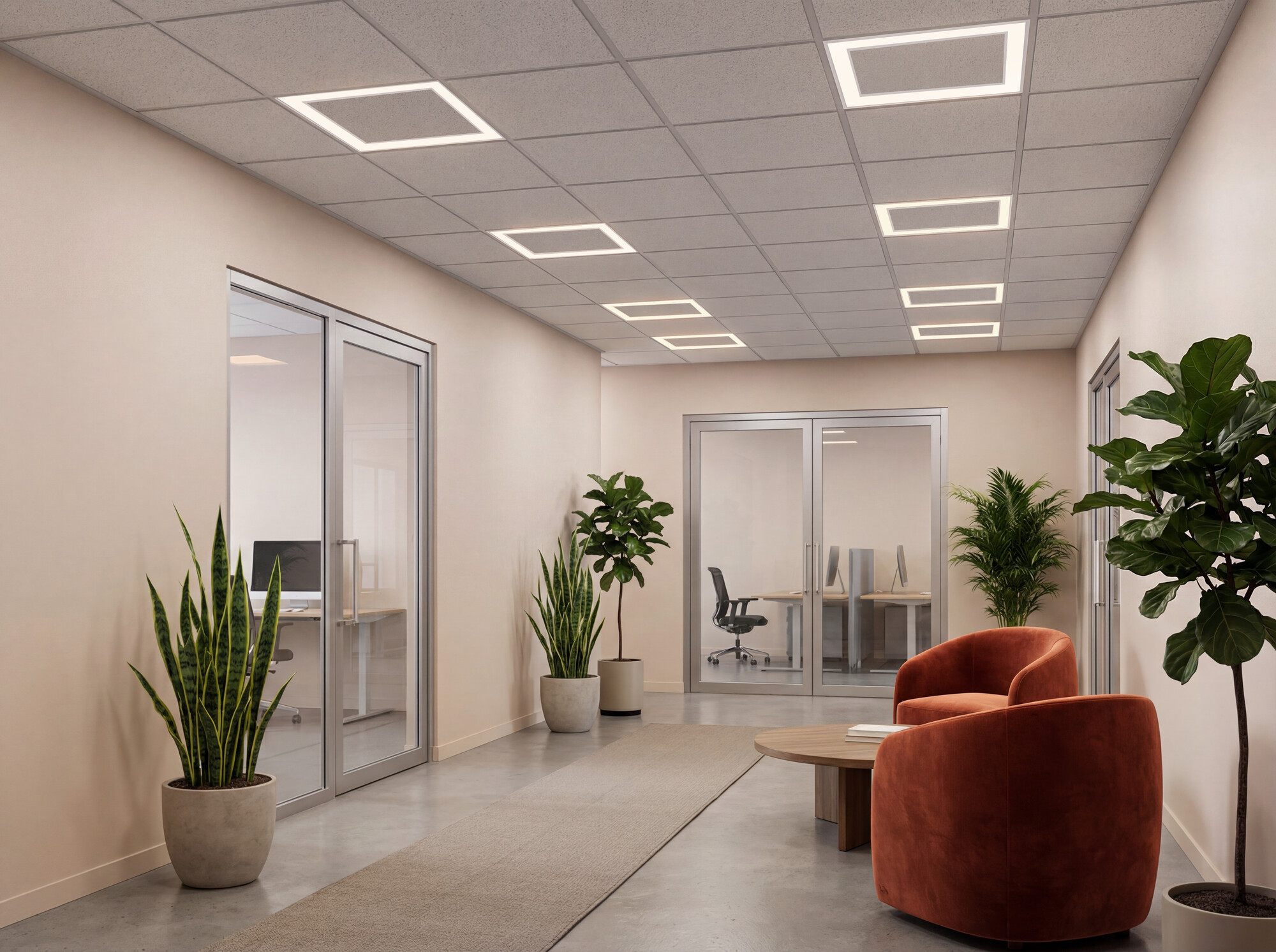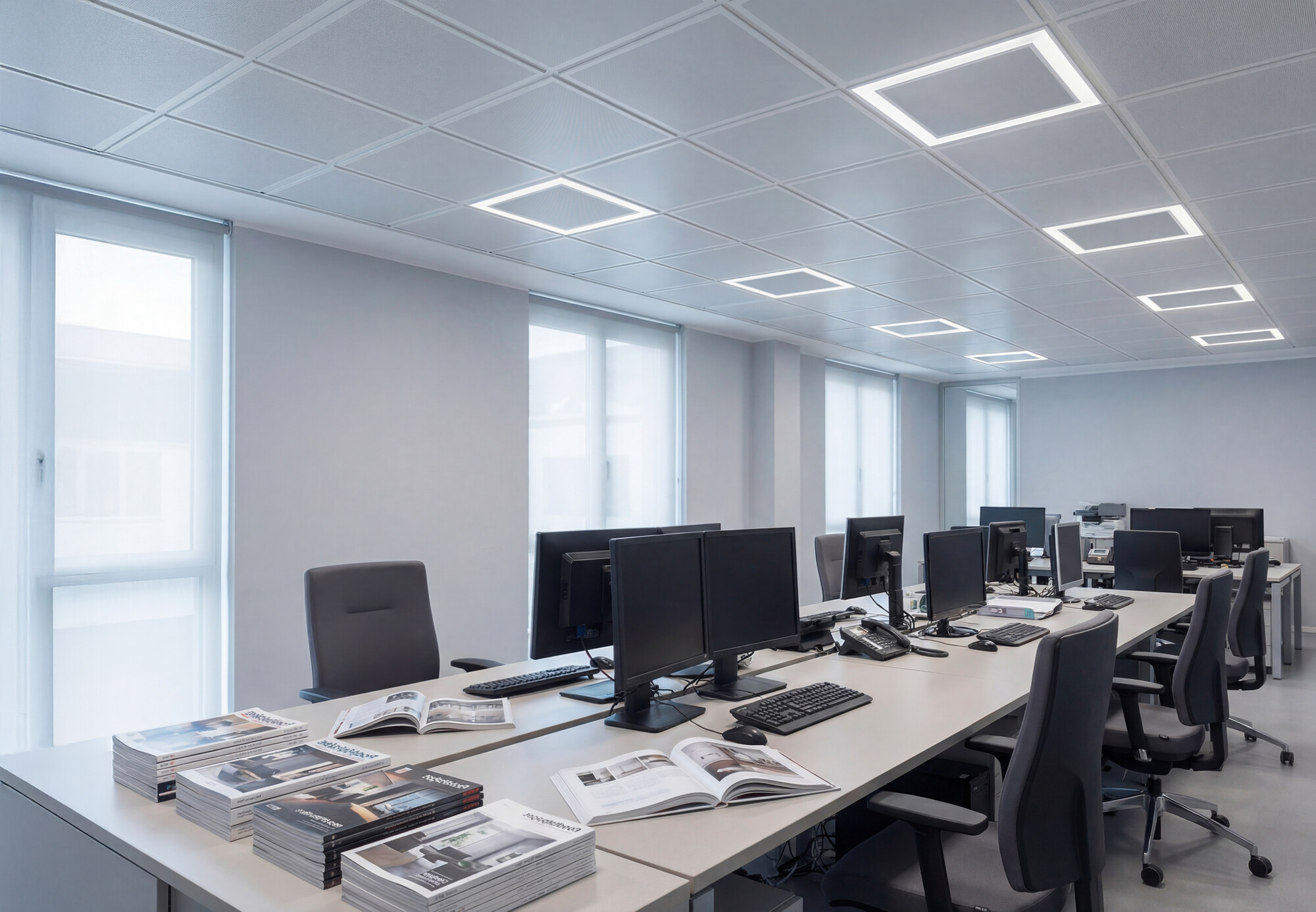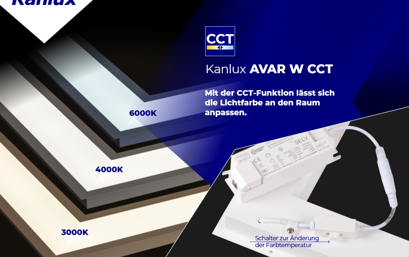 Effiziente, moderne und flexible Gewerbe- / Bürobeleuchtung mit Kanlux LED Rahmen Panel AVAR W U 6060 mit LOW UGR <19 (geringe Blendung) und CCT LED-Technik leuchtet wählweise in 3000K warmweiss, 4000K neutralweiss oder 6000K kaltweiss mit bis zu 4000 Lumen an Lichtstrom. Nennleitung 32 Watt, Artikel-Nr. 46070.