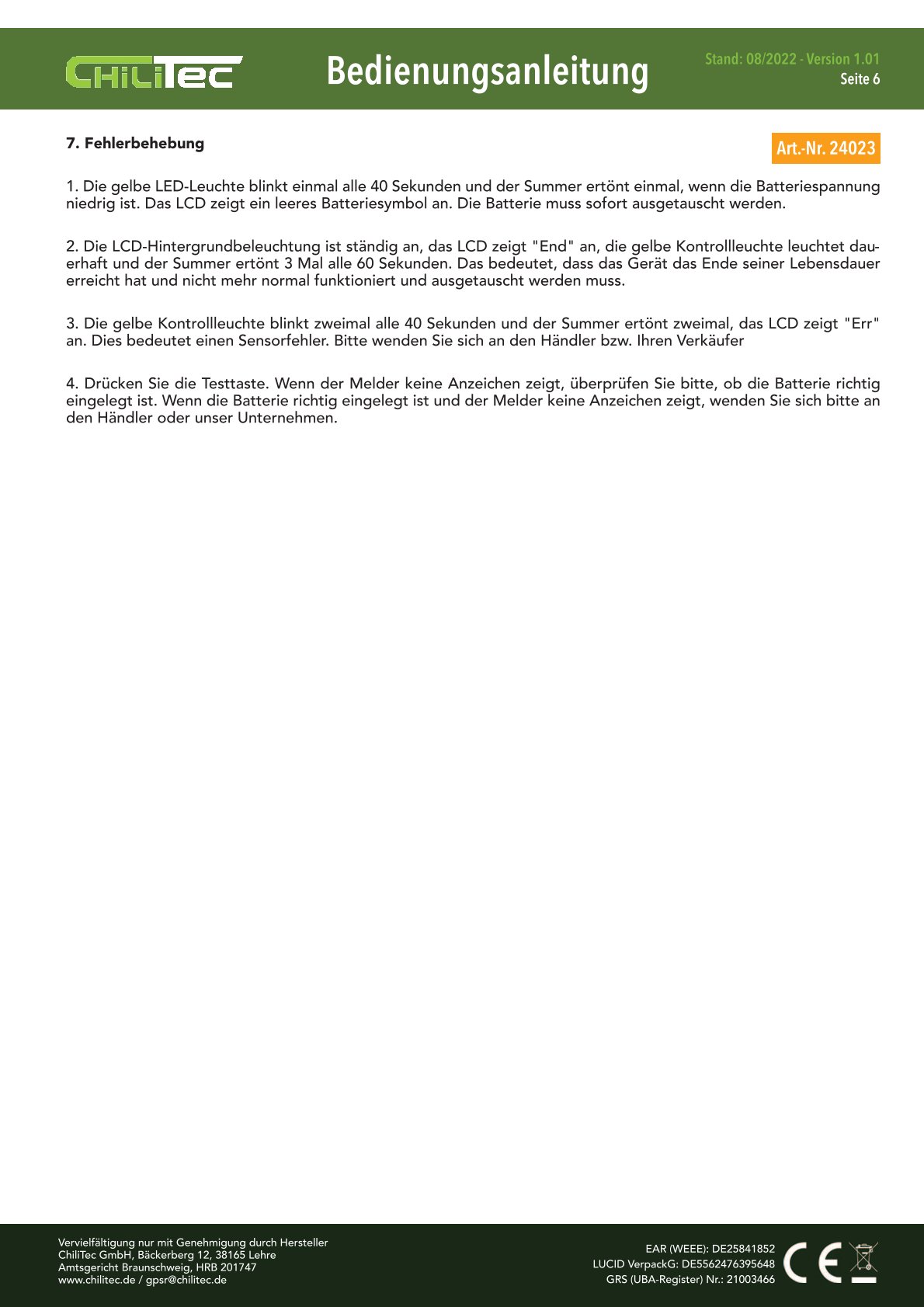 ChilItec Kohlenmonoxid Melder "CT-KM 25" mit Art. 24023 ist nach EN 50291 zertifiziert und kann das Leben retten.
