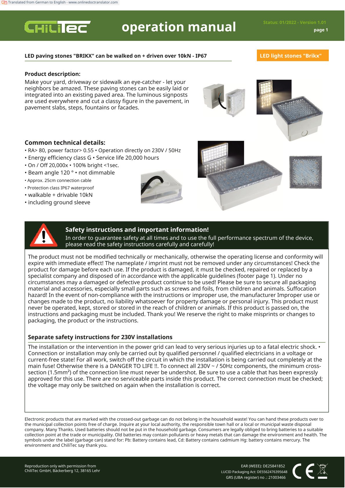Spannung : 230V, 50Hz