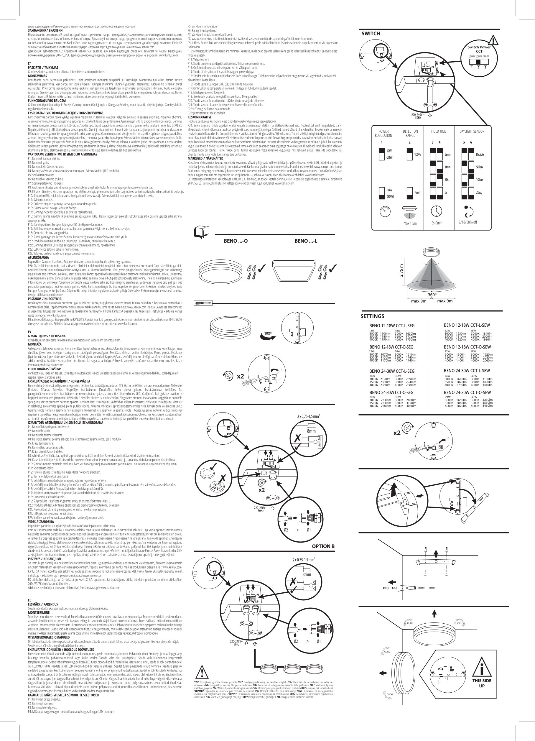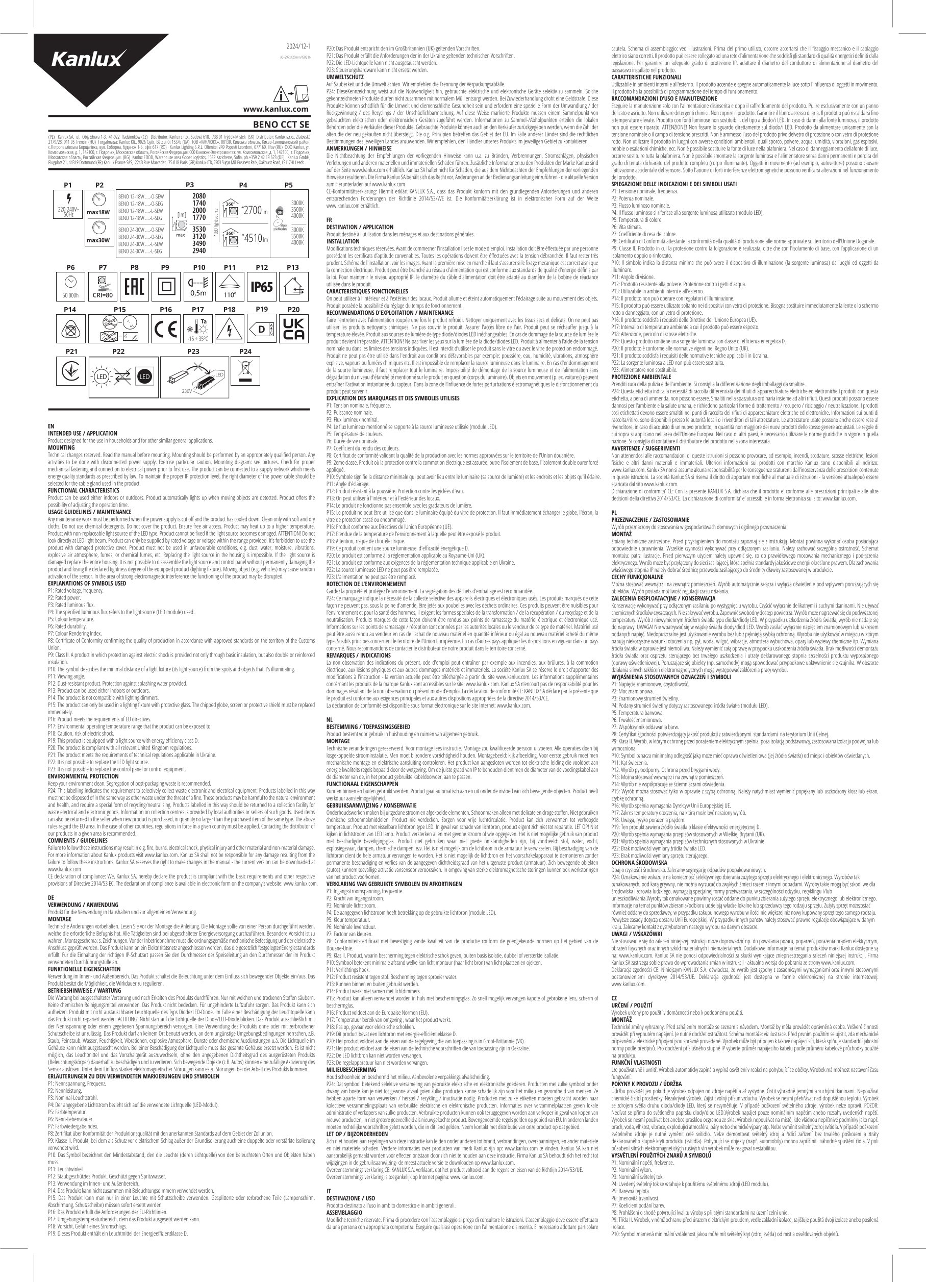 Angaben gem. Hersteller EU-Produktsicherheitsrichtlinie: Kanlux GmbH / IDEAL, Flugplatz 21, 44319 Dortmund, kanlux@kanlux.com