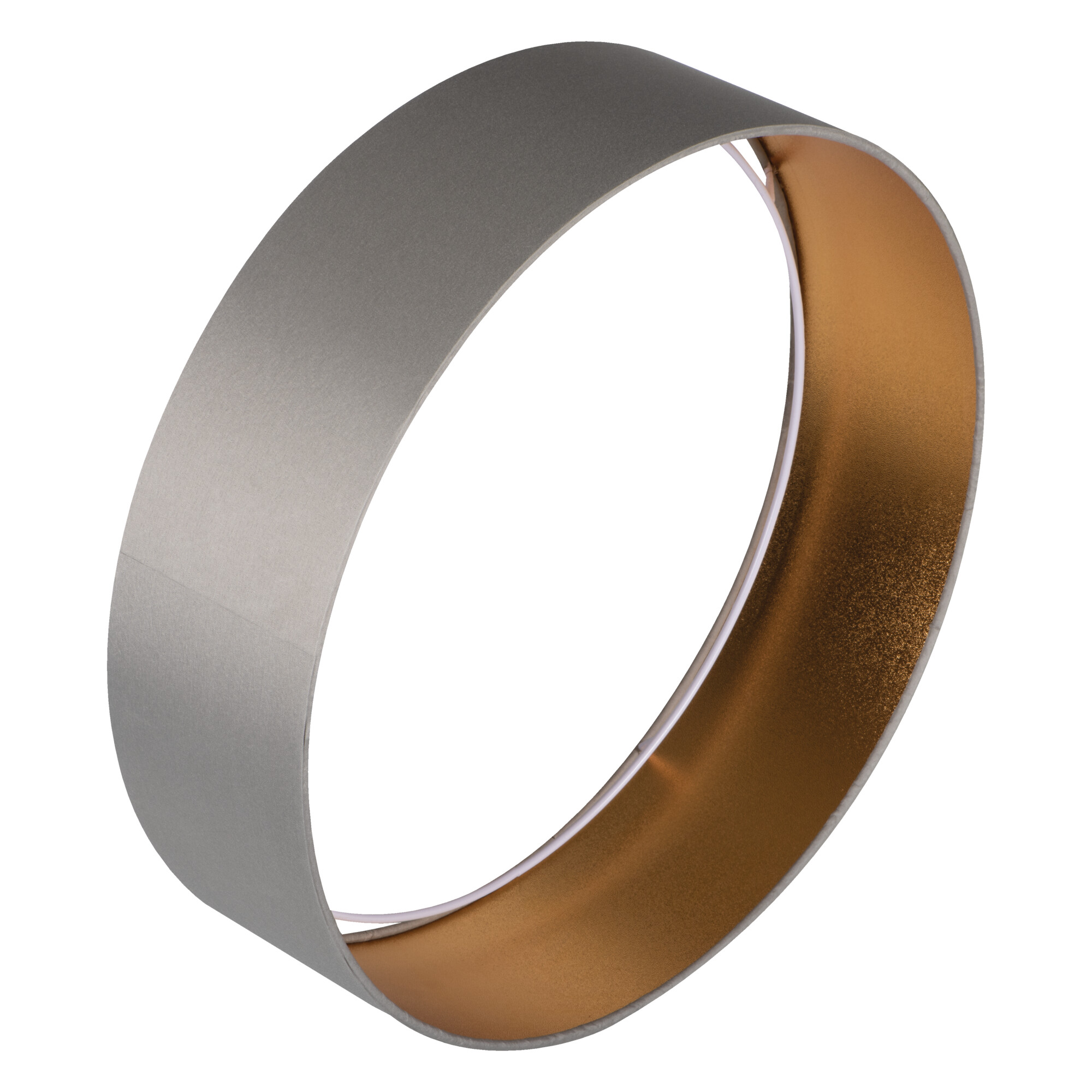 Energieeffiziente LED Deckenleuchte mit 17,5W Leistung aus RIFA Serie von Kanlux mit Art.-Nr. 36467 mit Stoffschirm Ø400 in Farbe Grau + Gold strahlt 1450 Lumen Lichtstrom in warmweiss 3000K ab.