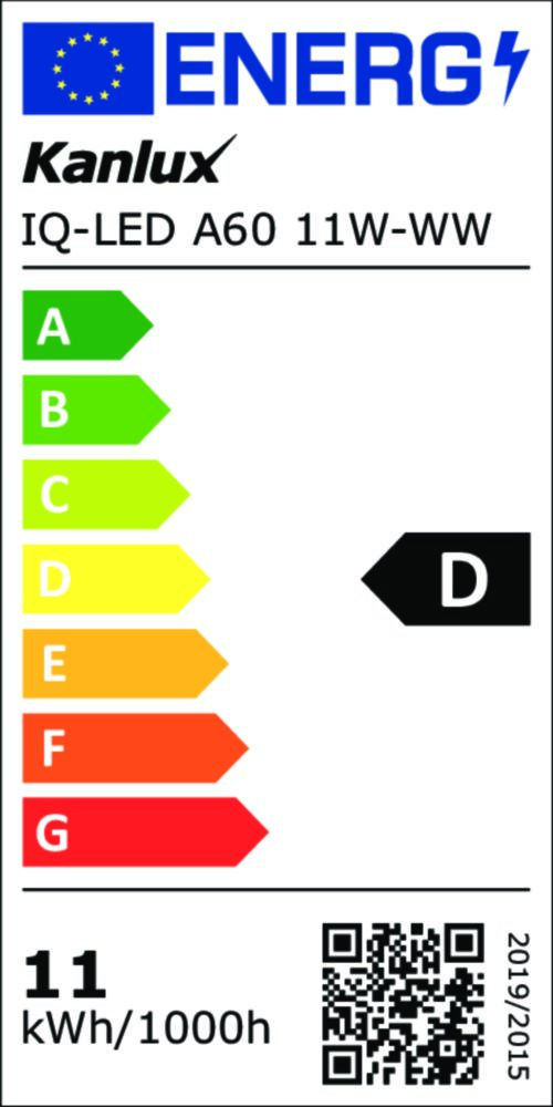 Effiiente und helle 11W A60 LED Lampe aus IQ-LED Serie mit Art.36679 von Kanlux mit 1521Lm Lichtstrom in 2700K warmweiss. Leuchtmittel ist mit RA90 Farbwiedergabe und 180° Abstrahlwinkel.