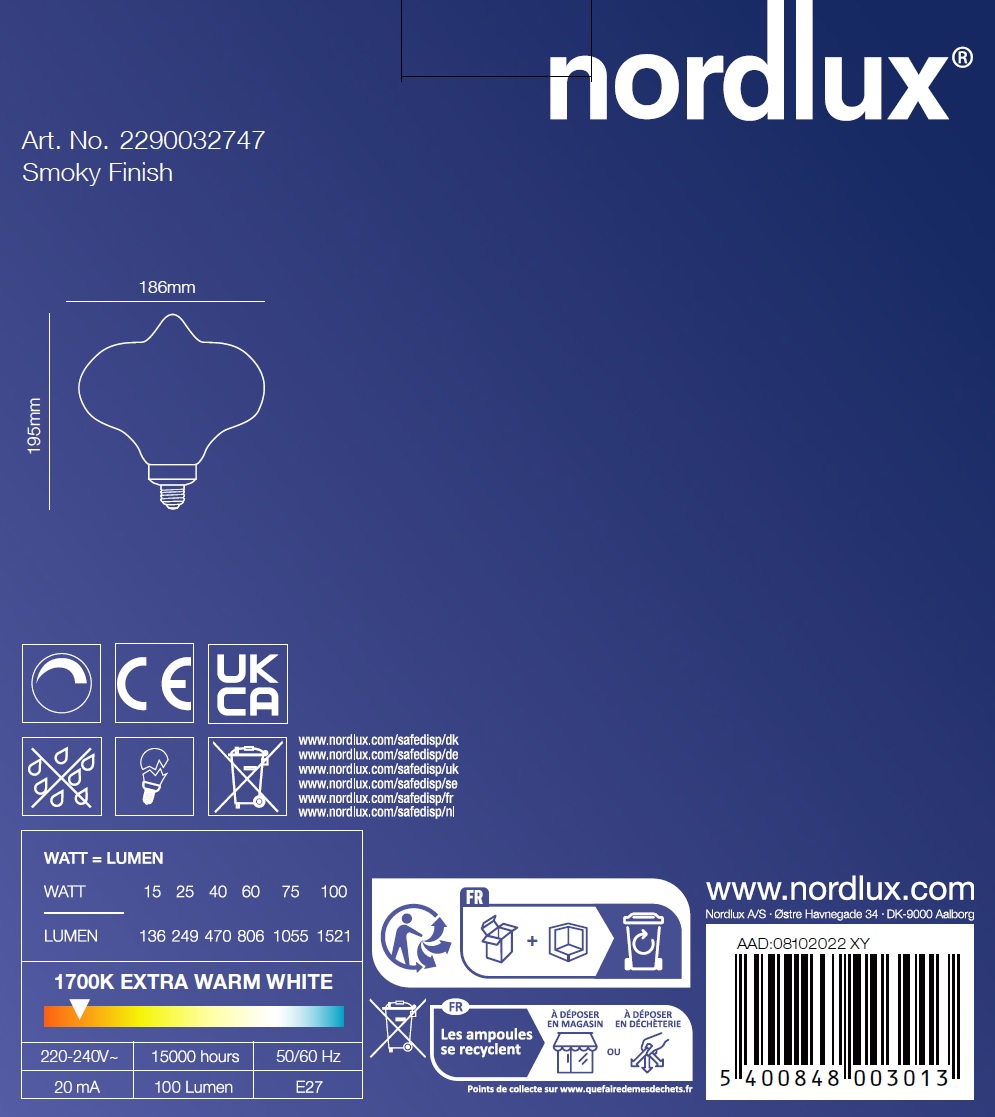 Angaben gem. Hersteller EU-Produktsicherheitsrichtlinie: Nordlux / DFTP, Nordlux Group A/S, consumer@nordlux.com, Ostre Havnegade 34, 9000 Aalborg, DK