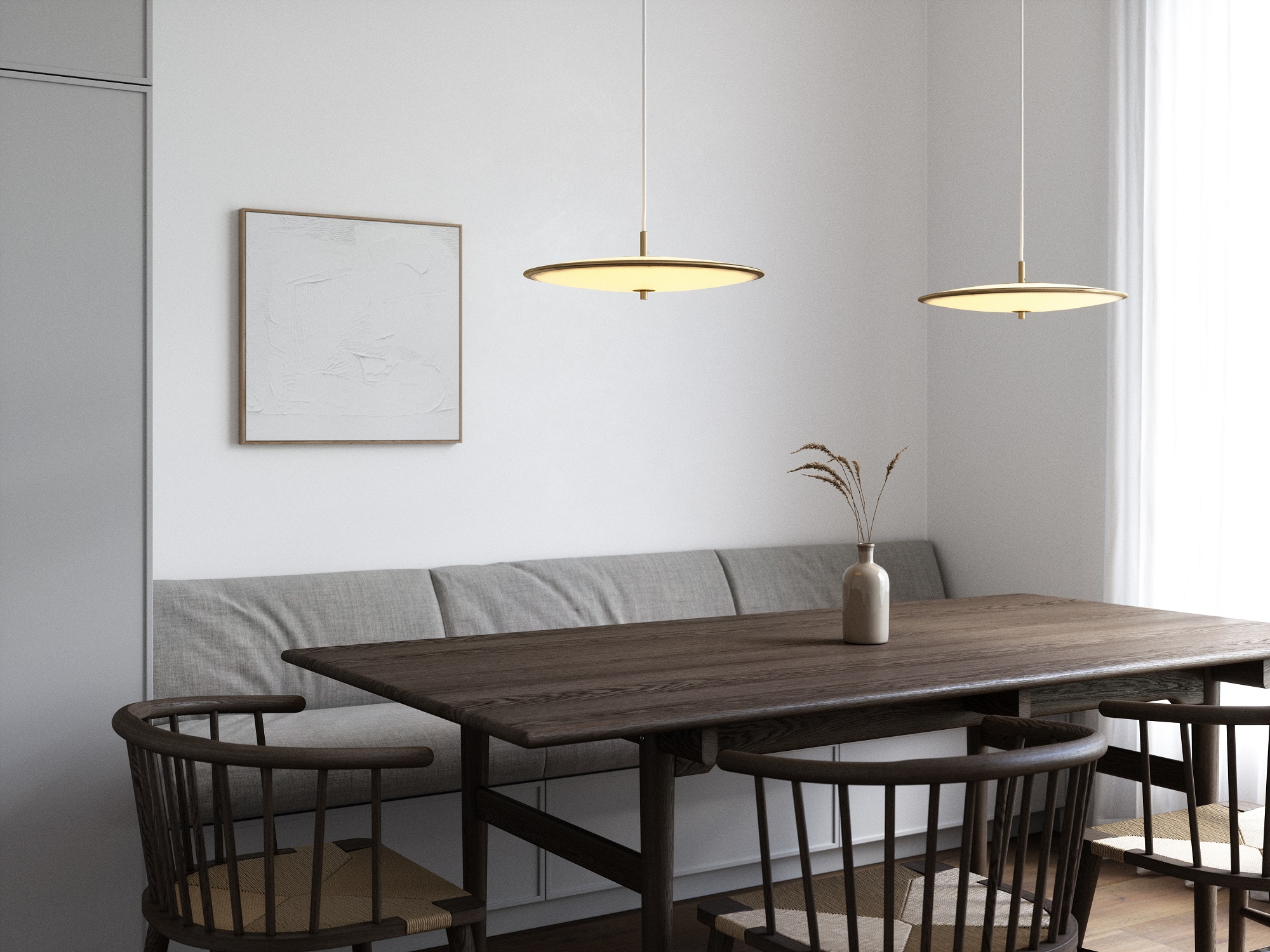 Helle nordische Pendelleuchte Blanche 42 von Nordlux mit stromlinienförmigem Design - Pendel 2120773035 aus Metall in Messing mit 24W Leistung und 2900Lm in 3000K warmweiss.