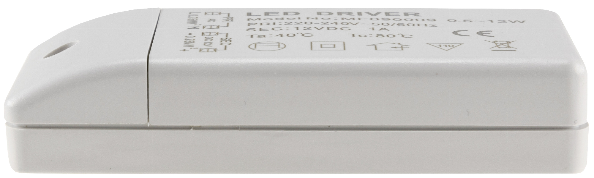 Kompakter LED Trafo 20934 von ChiliTec - Elektronischer CT-12E-V2 0,5-12W - ideal für den Betrieb von LED Wandeinbauleuchten.
