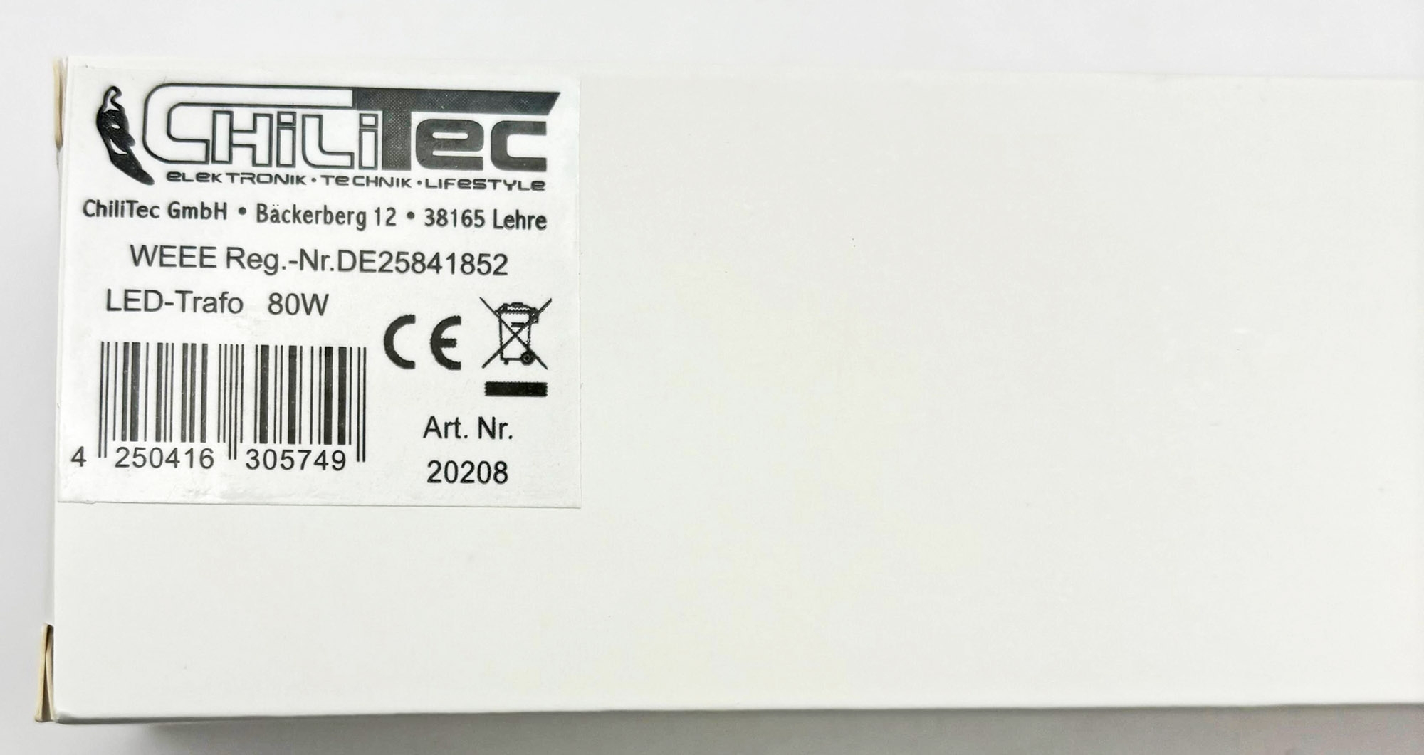 Kompakter LED Trafo 20208 von ChiliTec - Elektronischer CTE-80-V2 1-80W - ideal für den Betrieb von LED Wandeinbauleuchten.