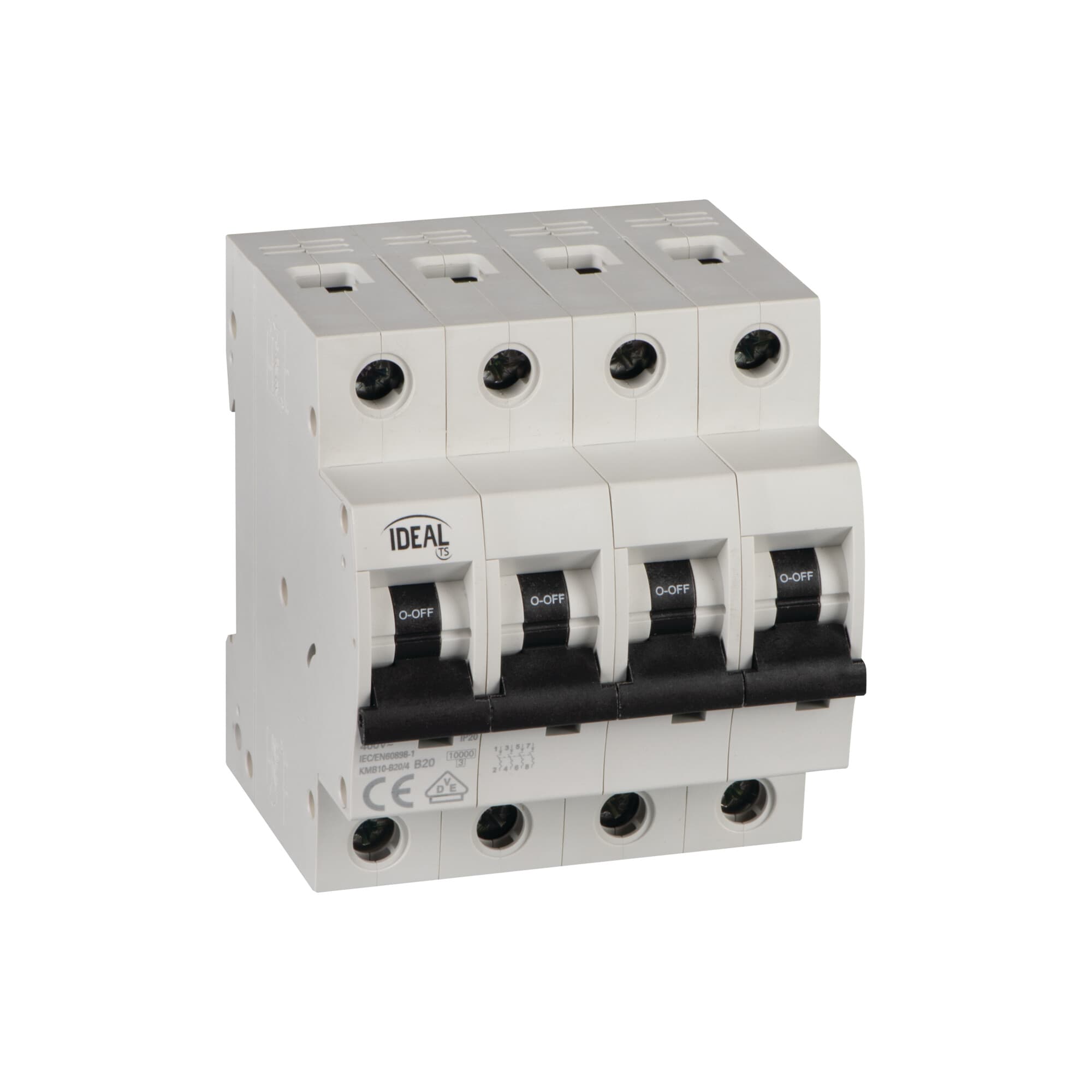 Sicherung mit VDE Zeichen - Leitungsschutzschalter aus KMB10 Serie von Ideal - Sicherungsautomat 39342 by Kanlux 4-Polig, Schutzschalter mit Bemessungstrom 20A.