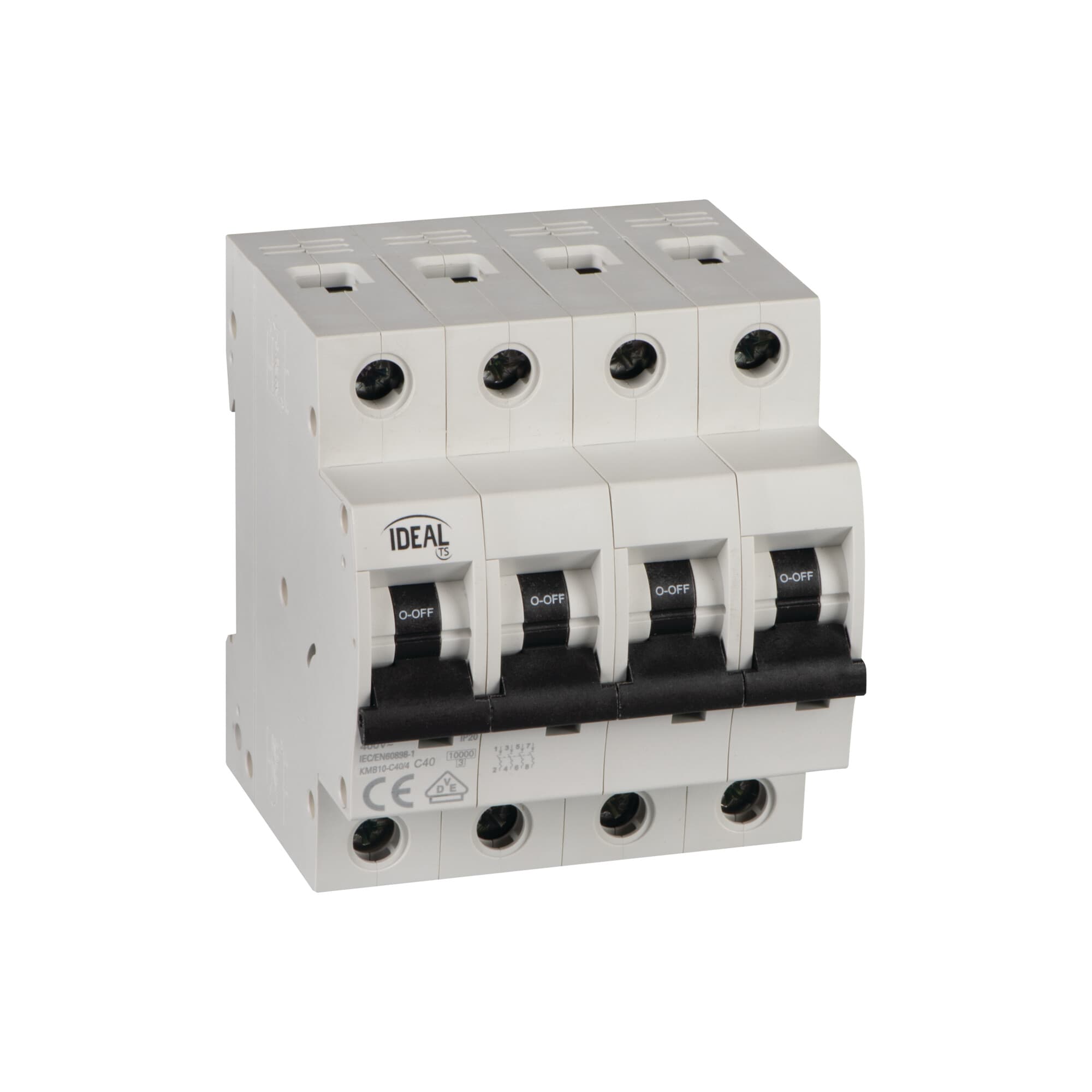 Sicherung mit VDE Zeichen - Leitungsschutzschalter aus KMB10 Serie von Ideal - Sicherungsautomat 39398 by Kanlux 4-Polig, Schutzschalter mit Bemessungstrom 40A.