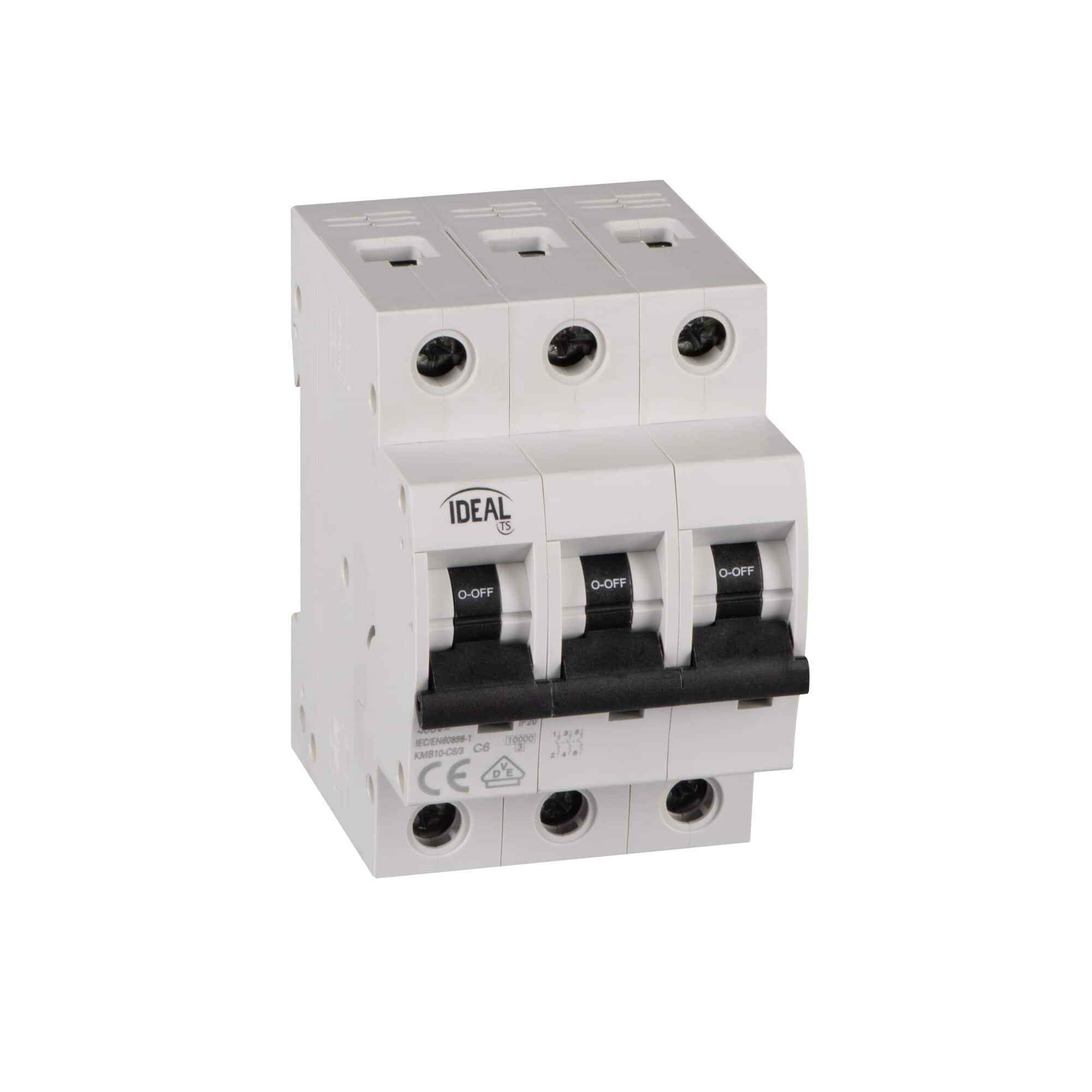 Leitungsschutzschalter 3-polig aus KMB10 Serie von Ideal - Sicherungsautomat 39322 by Kanlux - C6 3P, Schutzschalter Sicherung mit Leistung 6A.