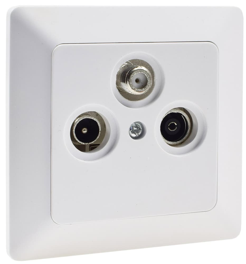 MILOS Antennendose TV+Radio+Sat (für SAT, TV und RADIO) aus MILOS Serie in Farbe Matt Weiß, Einsatz und Rahmen, Artikel-Nr. 22783.