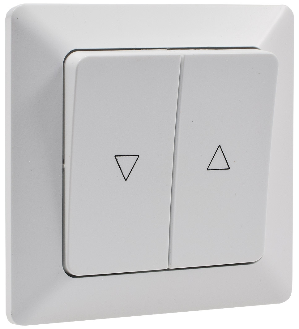 Einsatz mit Rahmen - ChiliTec MILOS Jalousietaster / Rolladentastermit Art.-Nr. 22777 und Rahmen aus MILOS Serie in Farbe Matt Weiß mit Schraubanschluss.