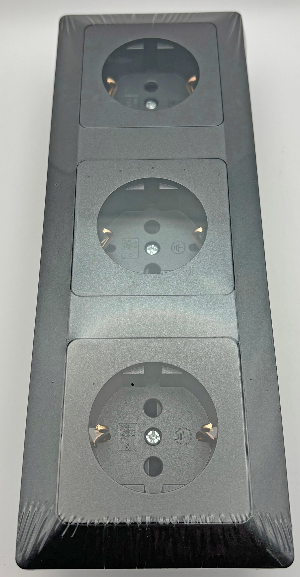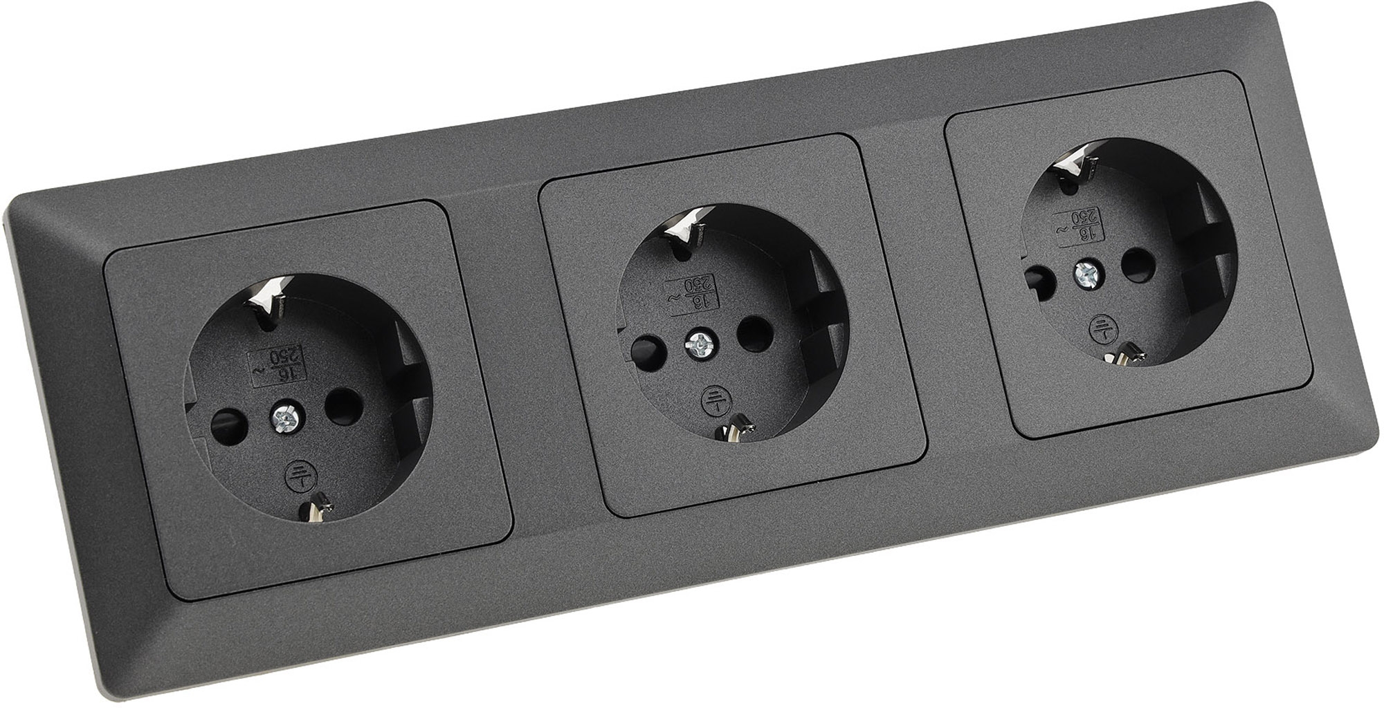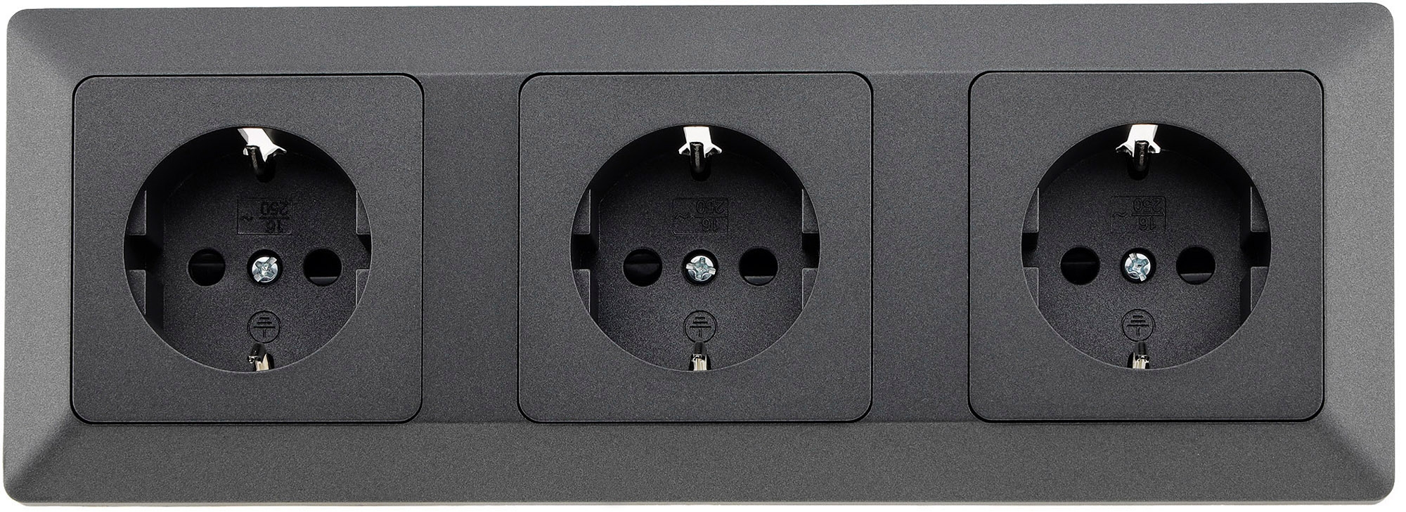 MILOS Set drei Steckdosen mit Klemmanschluß + 3-fach Rahmen in Farbe Anthrazit, Art.-Nr. 23122 von ChiliTec.