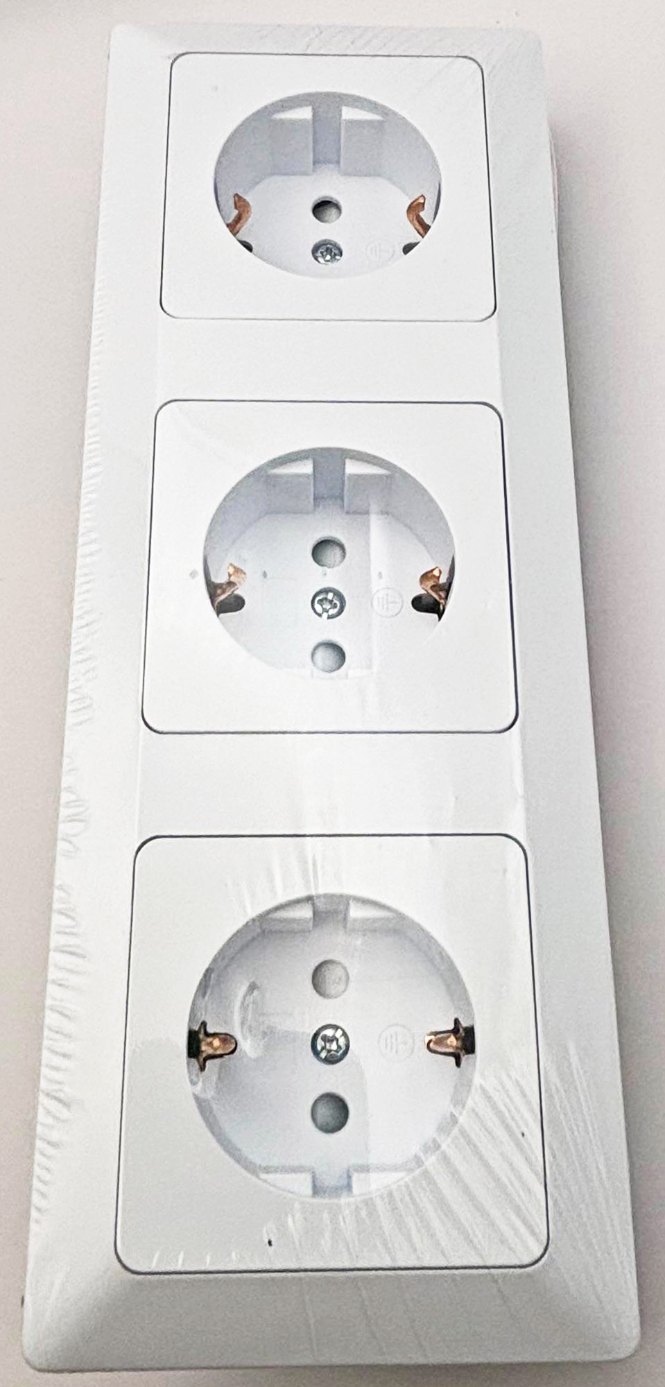 Lieferumfang : 3x MILOS Steckdosen-Einsatz (3x 22771) + 1x 3-fach Rahmen (1x 22789) in Matt Weiß