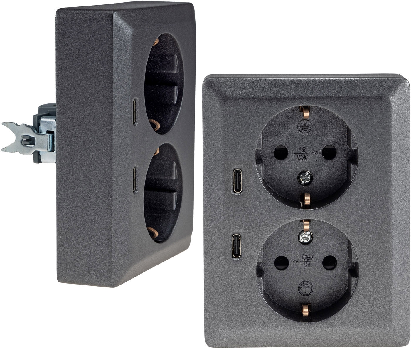 Lieferumfang : 1x 2-fach Steckdose mit 2x USB C, Anthrazit, 24014