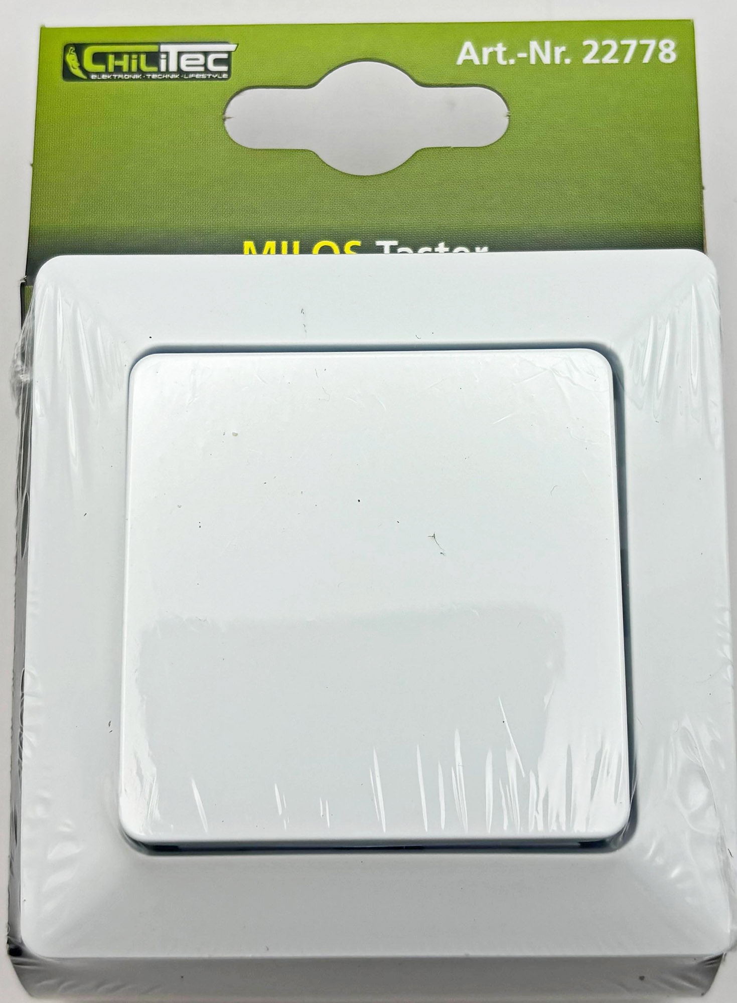Einsatz mit Rahmen - ChiliTec Taster mit Artikel-Nr. 22778 aus MILOS Schalterserie in Farbe Matt Weiß mit Schraubanschluss.