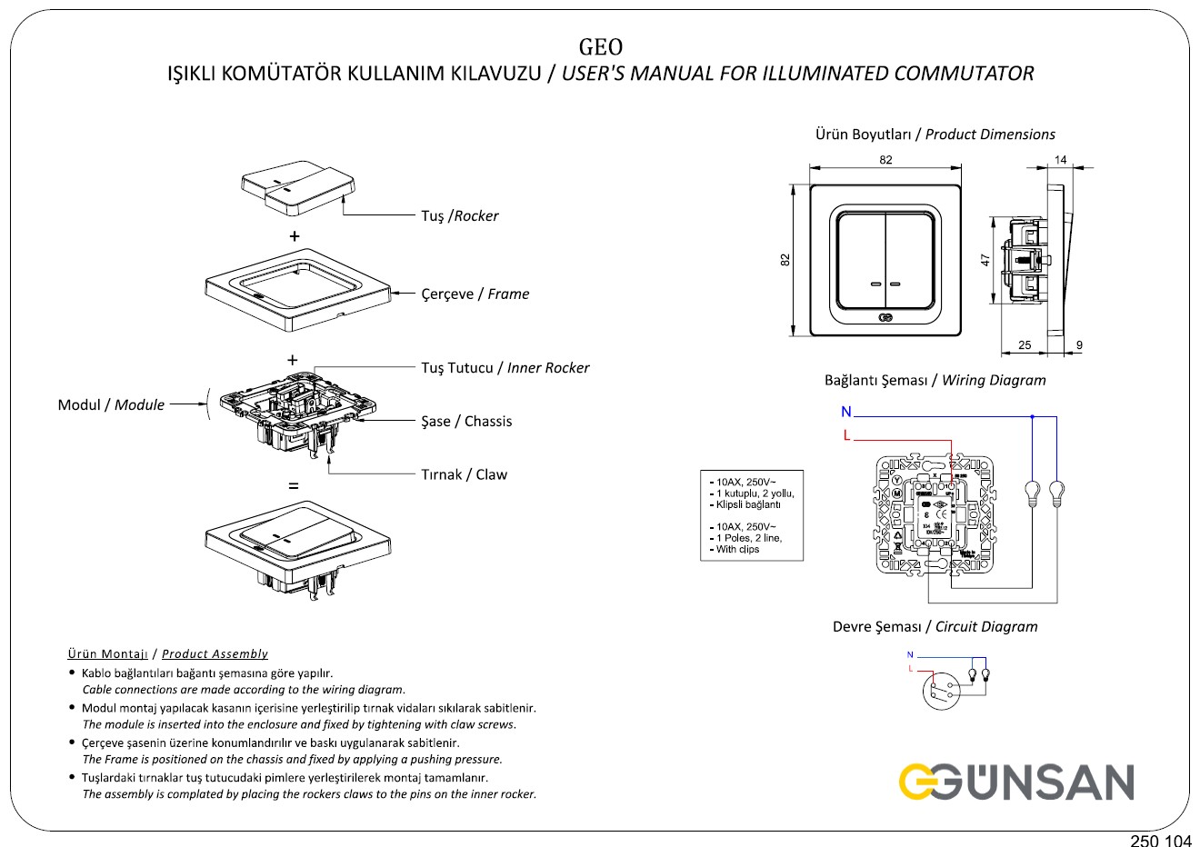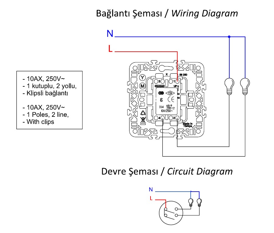 Gunsan Moderna 2-fach Schalter Ein-/Ausschalter mit Beleuchtung Unterputz Weiss