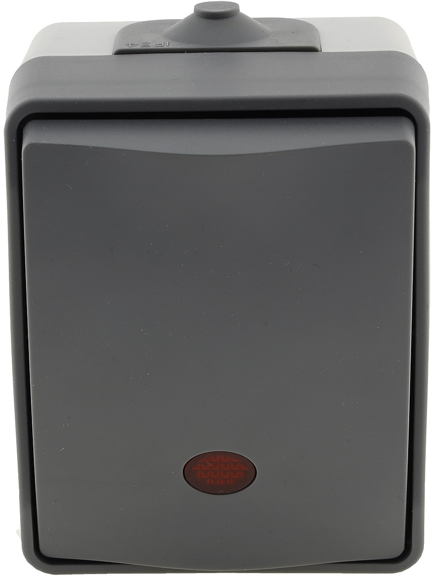 IP54 Kontrollschalter mit Beleuchtung / (Serienschalter EIN / AUS) Lämpchen für Feuchtraum und Aufputz Montage von ChiliTec Art. 23282 aus NUQUI-Serie.